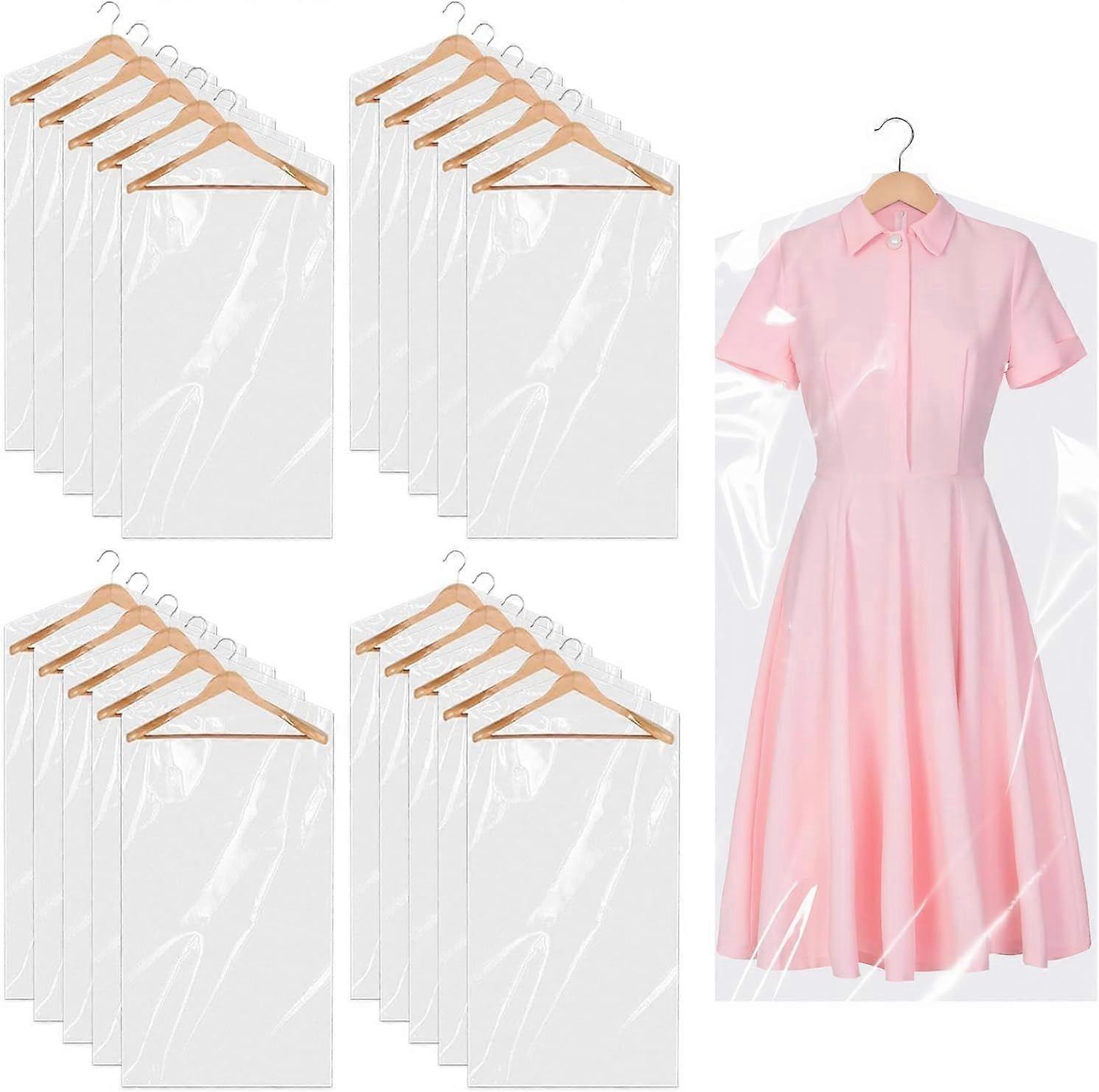 Plastic Clothes Covers 20pcs Bags for Hanging Clothes Dust-Proof Clear Clothes Covers Garment Bags 60x90 cm Dry Cleaning Bags for Closet Coats Jacket Suits Dress Product Description Opening at the top of the cover Bottom opening toslide in your garment High-quality material Not easy to break after pulling, can be used repeatedly 2.Opening at the top of the cover Soft Prevent your palms from being scratched by too hard materials. Waterproof and moisture-proof Prevent clothes from being ruined by moisture Please kindly check the size before buying. Size :60 x 90 cm This clothing dustproof cover ideal size for suits,shirts,trousers,tops,jacket,sport coats etc. It is bit short for some dresses or winter coats,so we don't recommend to use it as winter long coat or long dress protection. Easy to Use Transparent dust clothes cover bags, high visibility, lightweight, foldable, easy to carry and store Widely Applicable Pre-made holes specially designed for hangers, suitable for hanging suits, coats, shirts, pants, etc. Suitable for home, hotel, laundry, etc Keep your clothes fresh Protect your beloved clothes and prevent dust pollution.