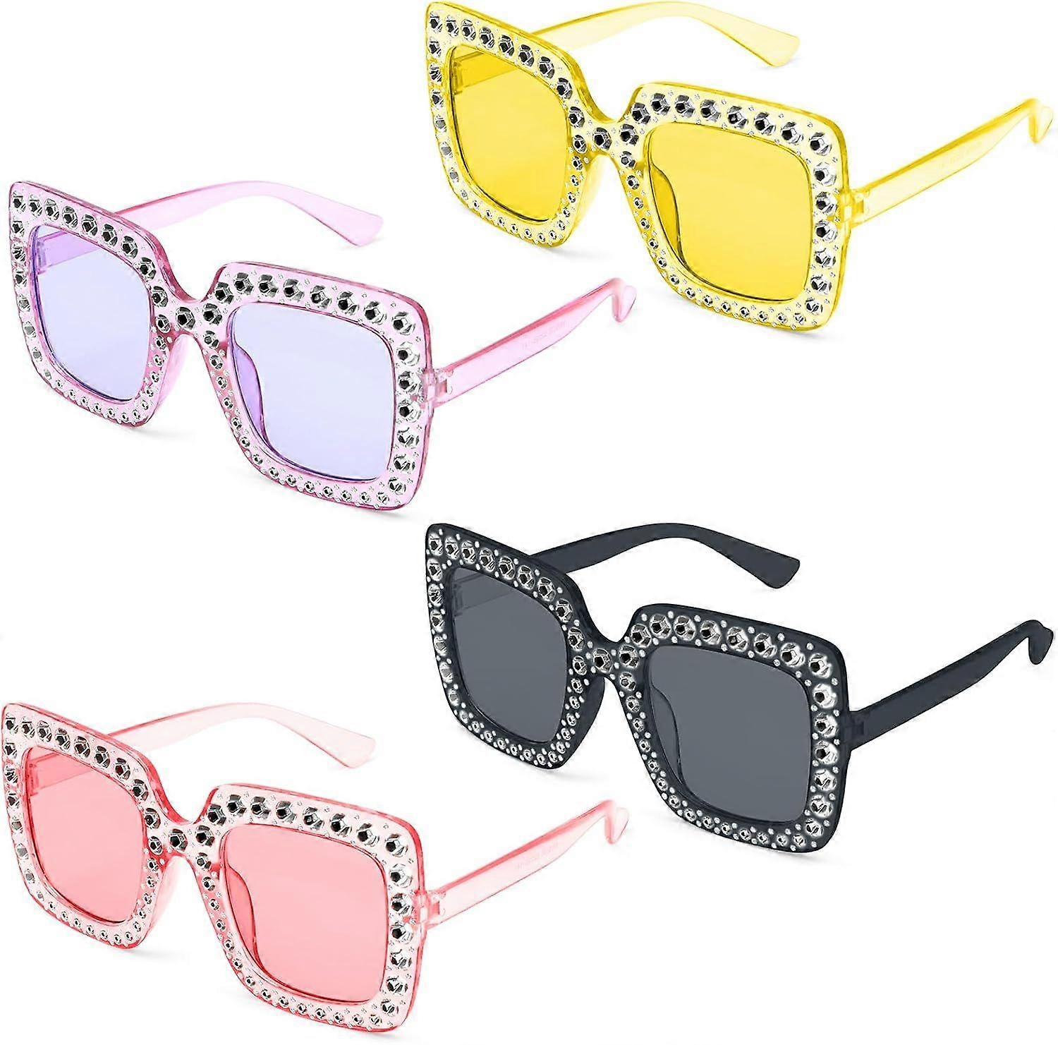 SPOKKI 4Pcs Retro Rhinestone Sunglasses Square 80s Festival Novelty Sunglasses Adult for Shopping Outings Beach Games Wedding Photo Shoots Party Dress