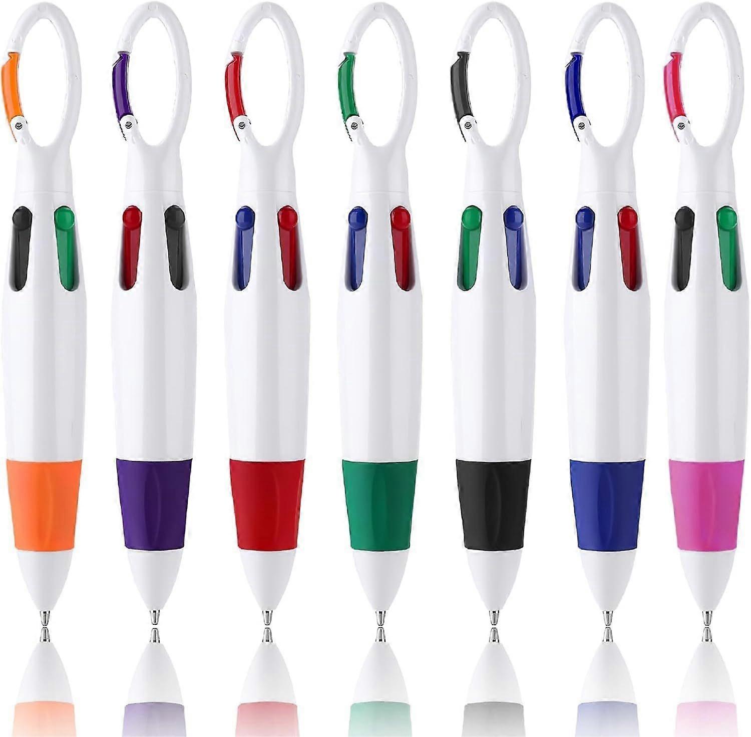 7pcs Retractable Shuttle Pens with Carabiner Clip 4-in-1 Ballpoint Pens Portable Multicolor Pen Buckle Keychain on Top for Office School Stationery Su