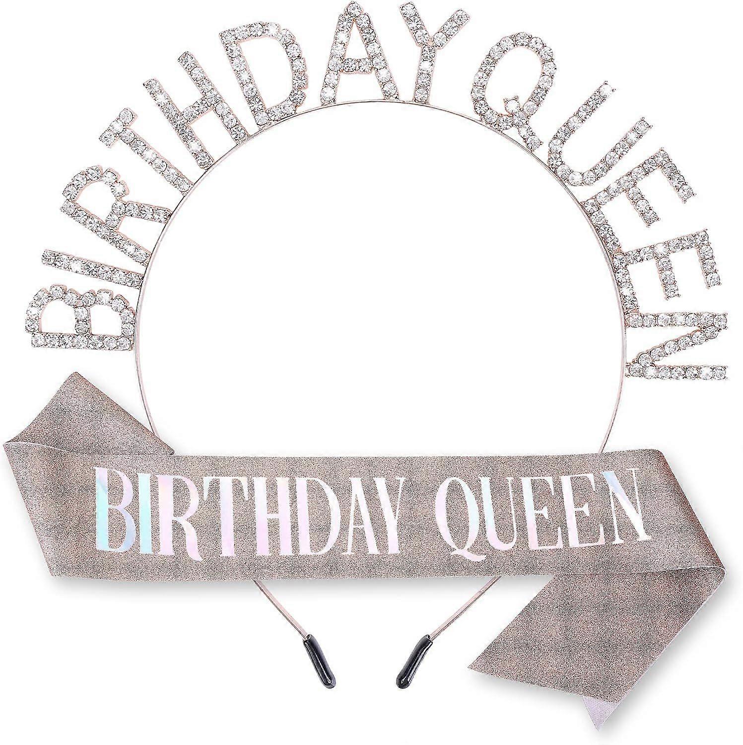 WLLHYF Birthday Queen Sash Crystal Headband Set Rhinestone Tiara Bling Glitter Crowns Hair Band Princess Tiara Sweet Happy Birthday Decorations Accessories for Women Girls Product description Birthday Queen Sash Crystal Headband Set Rhinestone Tiara Bling Glitter Crowns Hair Band Princess Tiara Sweet Happy Birthday Decorations Accessories for Women Girls Main Function: Birthday headband and shoulder band, design for all ages Specifications: Color: Rose gold Size: Headband product size: 6.5 6.3 0.12 inches/16.5 16 0.3 cm, Shoulder strap product size: 63 3.54 0.04 inches/160 9 0.1 cm Package includes: 1pcs x headband,1pcs x shoulder strap