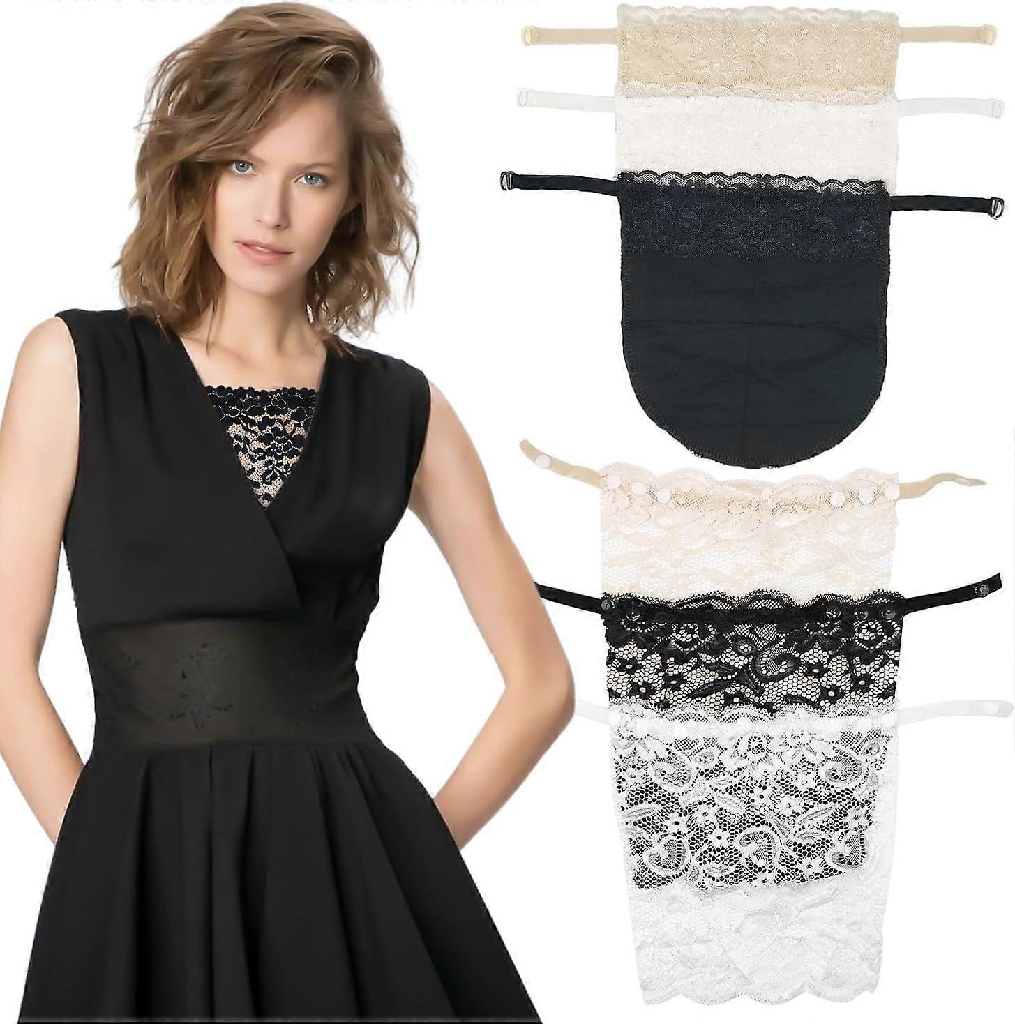 RUGBOL 6 Pcs Modesty Panels for Low Cut Tops Cleavage Cover Up Lace Inserts Anti Peep Invisible Bra for Woman (Skin Color White Black)