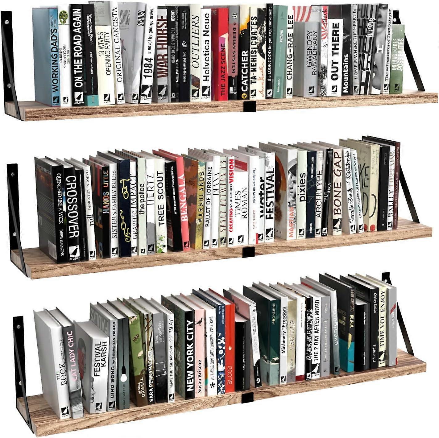 Floating Book Shelves for Wall Set of 3, 33" Wood Wall Shelf Storage, Hanging Shelving for Bedroom, Bathroom, Living Room, Kitchen, Office, Plants