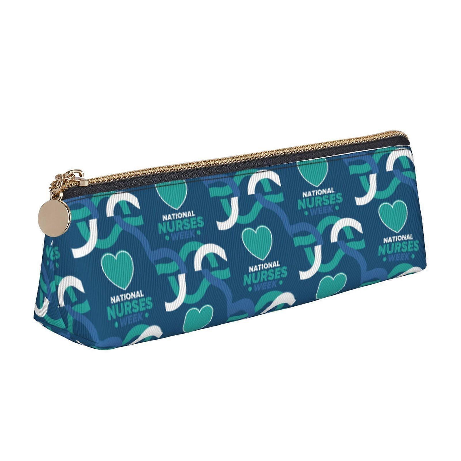National Nurses Day Pencil Case with Zipper Leather Pen Pouch Storage Bag Cosmetic Organizer Bag