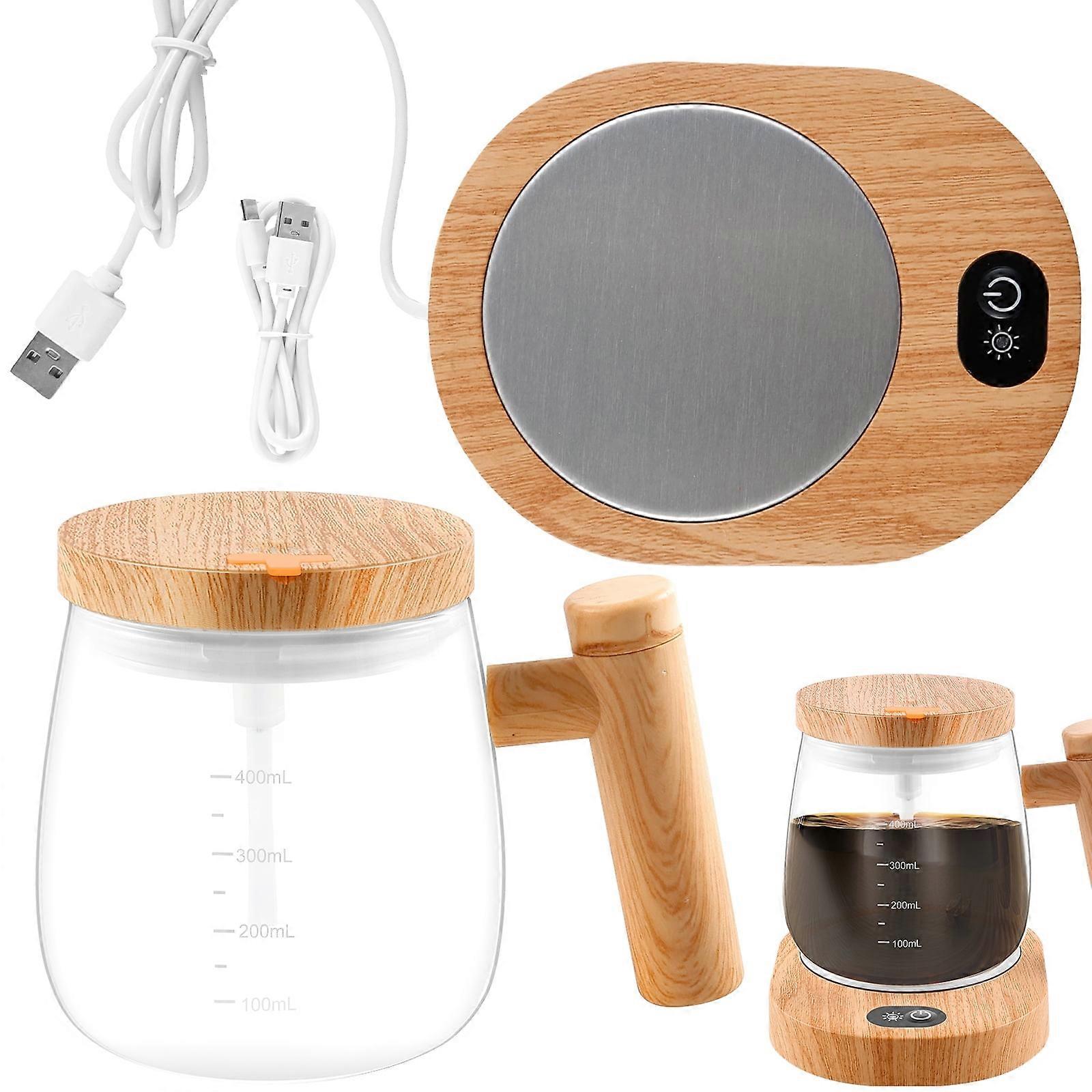 Self Stirring Mug 400ml with Measurement, Rechargeable Auto Mixing Glass Cup & Coaster, Portable Coffee Mixer (White)