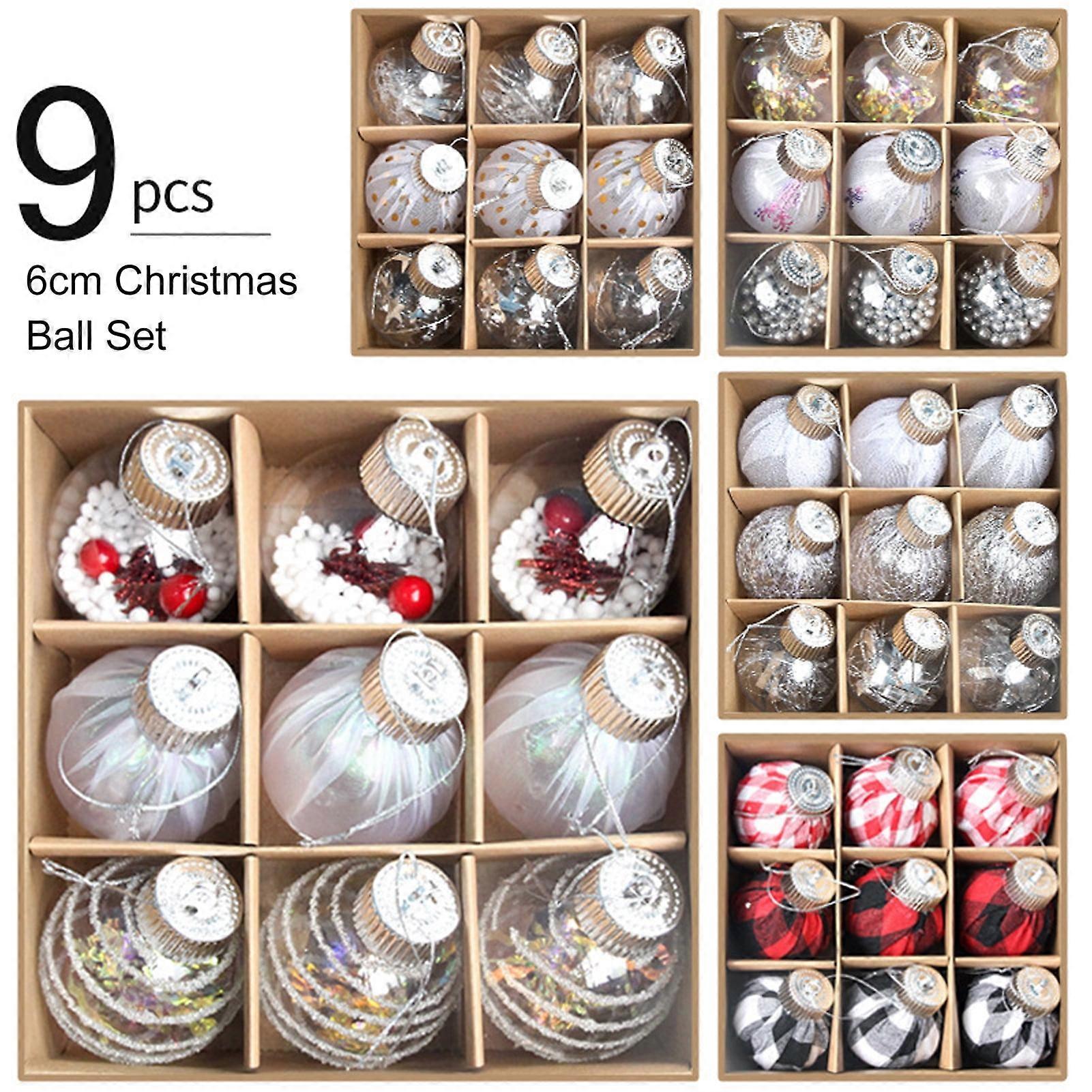 SUSUchens 9Pcs 6CM Christmas Balls, Clear Glitter Foam, Plaid, Shatterproof, Reusable Holiday Decor, Xmas Tree Ornaments, Party Supplies, Compatible