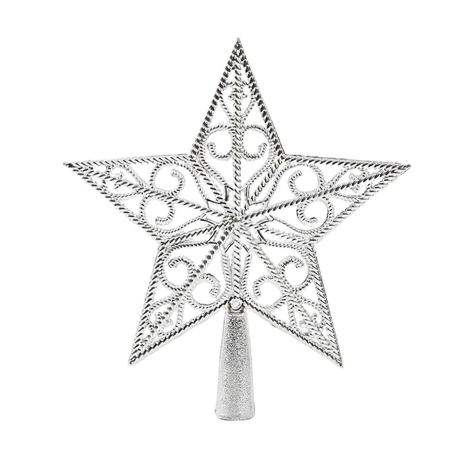 Beautynvta Christmas Star Tree Topper, Silver Glitter Plastic Star Ornament, Shatterproof Xmas Tree Top Decor, 5.9" x 6.7"