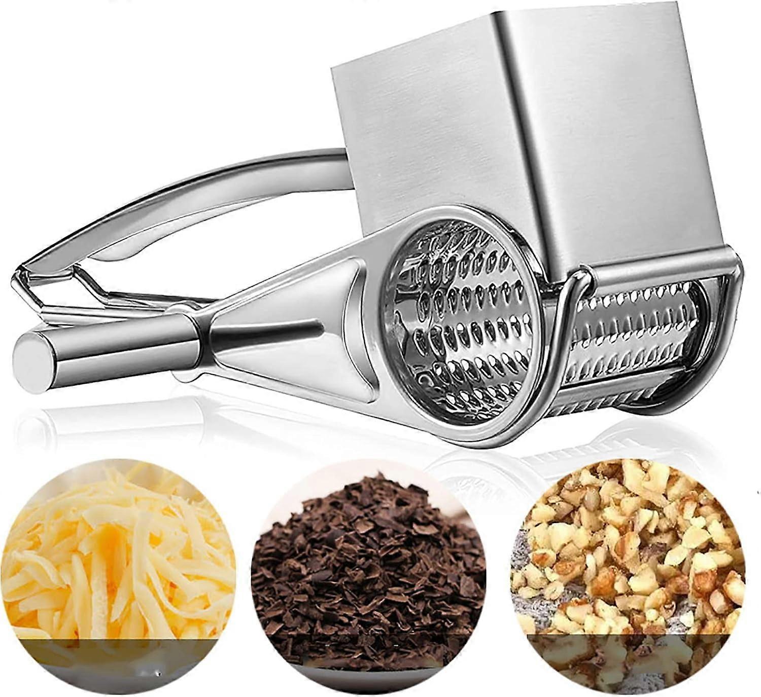 4 in 1 Manual Rotary Cheese Grater, compatible with Kitchen Use, Rust-Proof Metal Lemon Zester with Handle, 4 Stainless Steel Blades