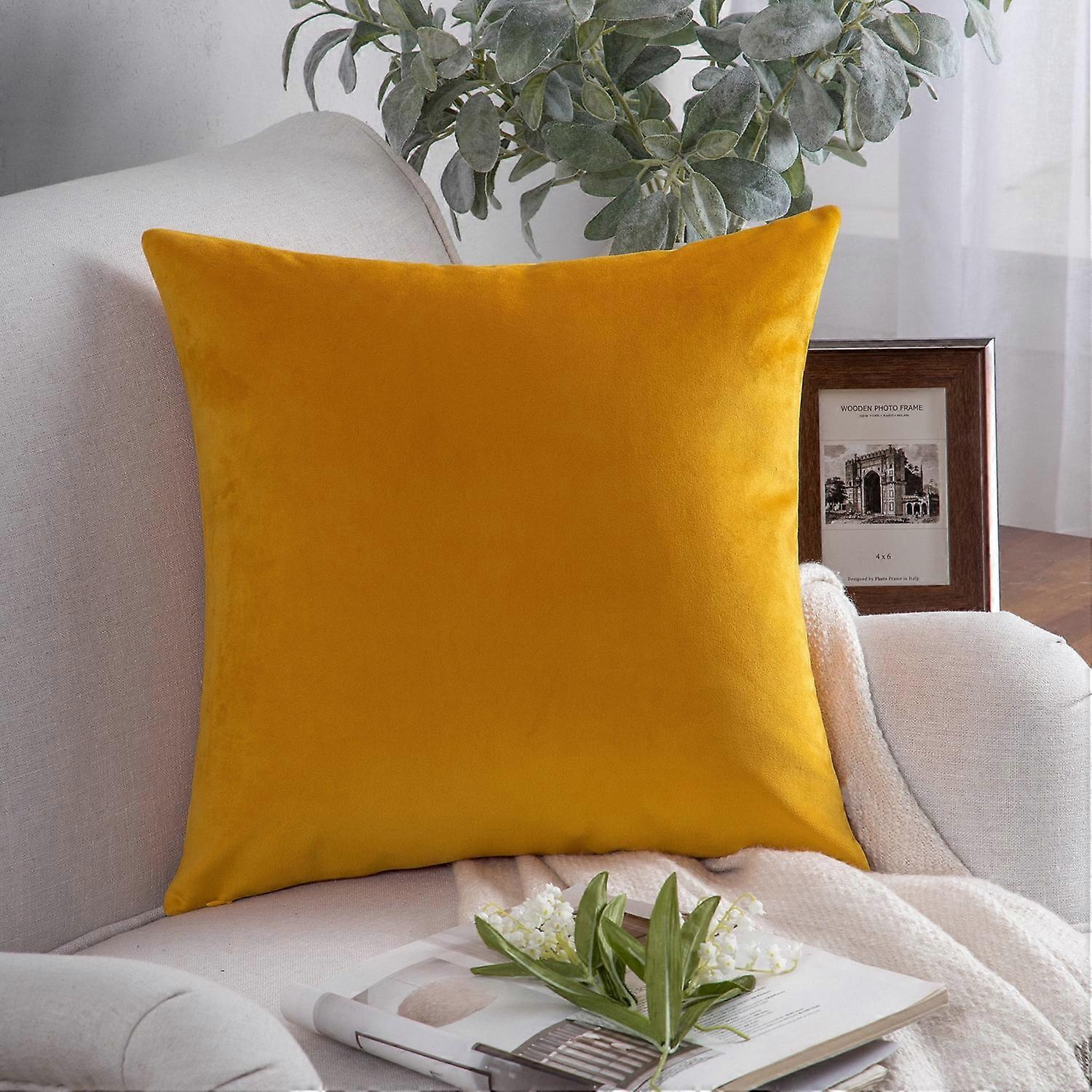 Phantoscope Soft Silky Velvet Square Decorative Throw Pillow Cover, 20" x 20", Lemon, 1 Pack