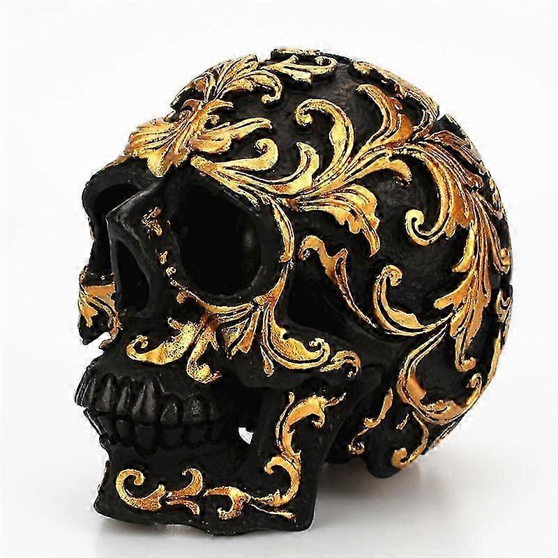 25-26 Resin Golden Pearl Home Skull Decor Desk Decoration Retro Craft Human Head Ornaments Scull Statues Sculptures