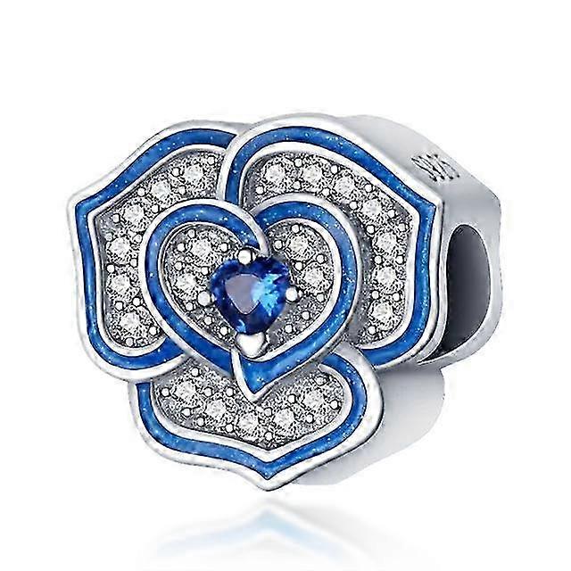 25-26 New 925 Sterling Silver Blue Murano Bead Pansy Flower Dangle Charm Fit Original Brand Bracelet And Necklace 925 Jewelry Gift