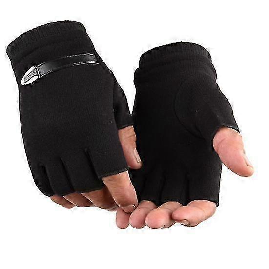 25-26 1 Pair Men Autumn Winter Riding Gloves Half Finger Faux Leather Elastic Cuffs Solid Color Sports Climbing Fitness Driving Mittens