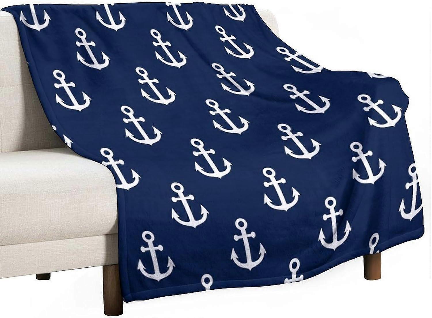 Anchor Blanket Vintage Rustic Ocean Nautical Style Navy Blue White Soft Cozy Lightweight Throw 60x80in for Bedroom Living Room Dorm Sofa Travel