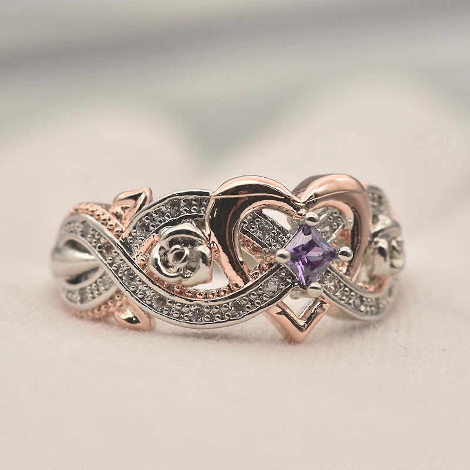 Jacenvly 2024 New Rings For Men Clearance Unique Rose Princess Diamond Love Heart-Shaped Rose Gold Two-Tone Zircon Gifts For Him Rose Gold