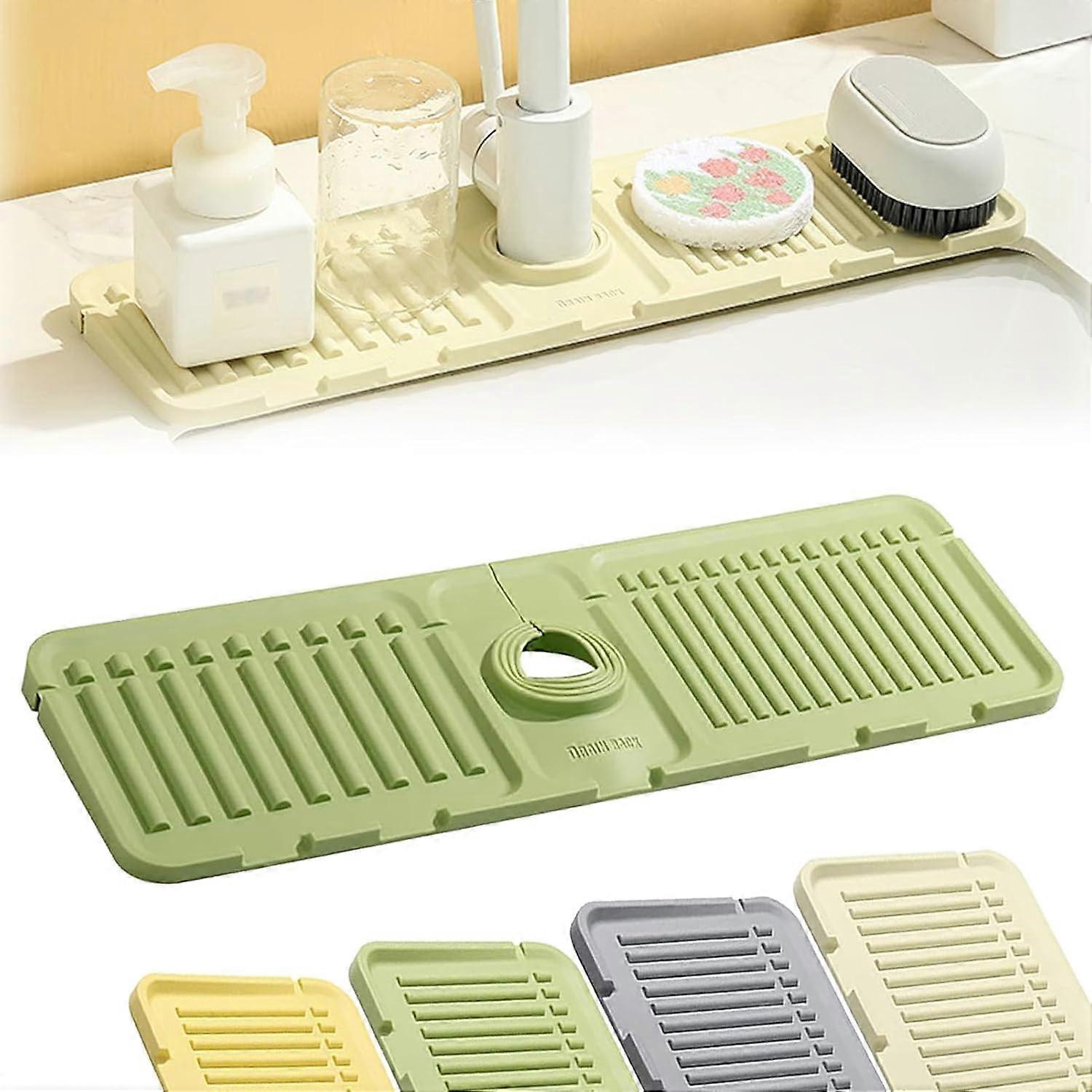 Silicone Draining Mat for Kitchen Sink, 17.5*5.5inch Beige Splash Guard Pad Compatible with Faucet
