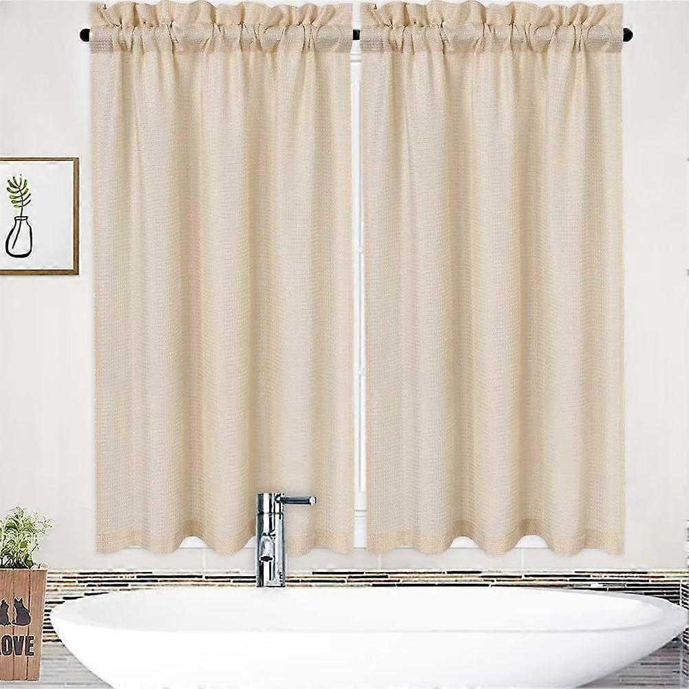 Haperlare Short Curtain for Bedroom 30"W x 45"L Waffle Woven Textured Light Filtering Tier Curtains for Kitchen Cafe Bathroom, Creamy, 2 Panels