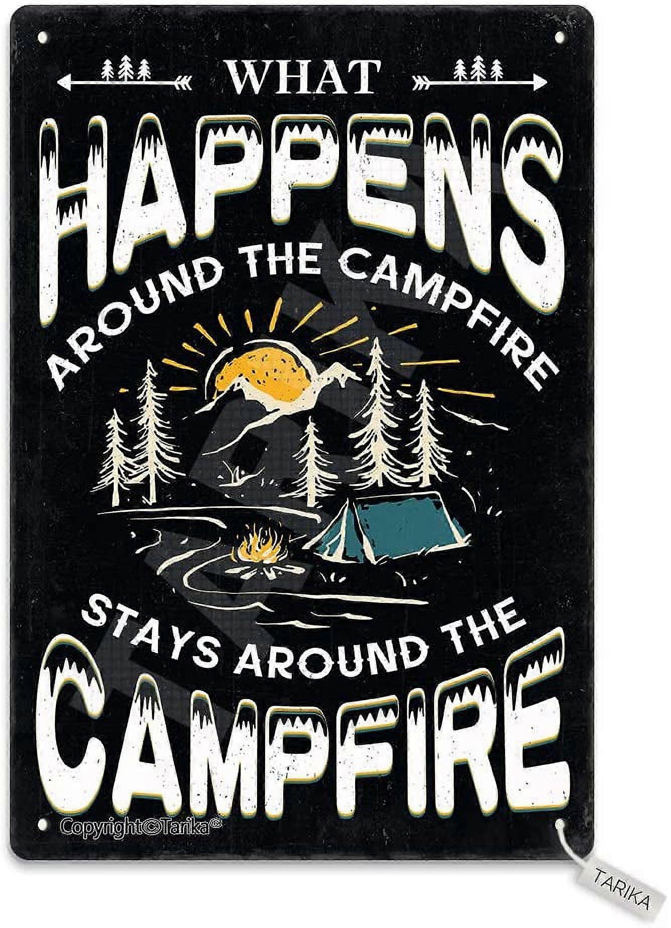 Retro 8x12" Metal Poster Sign - "What Happens Around The Campfire Stays" - Farm, Garden, Garage Wall Decor, Inspirational Quotes