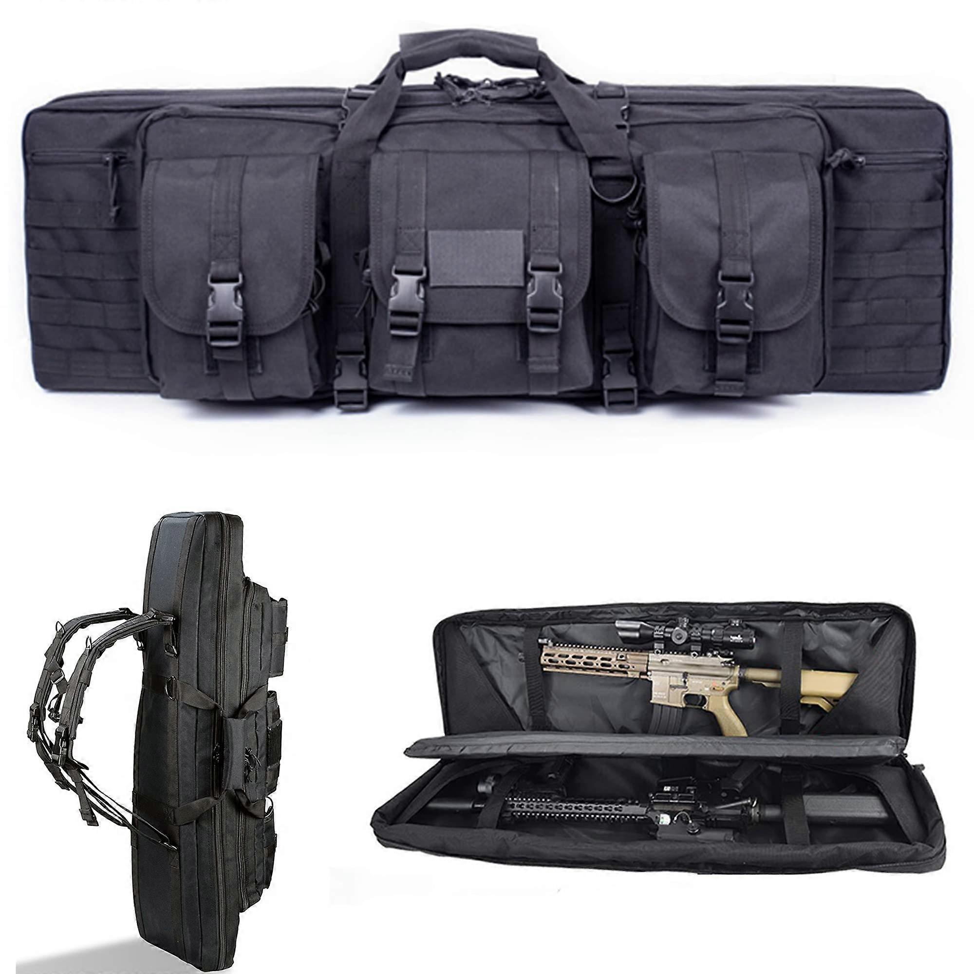 Rifle Cases Tactical Double Rifle Bag Airsoft Pistol Case Long Gun Bag Soft Padded Backpack Multi Pocket Black 140cm