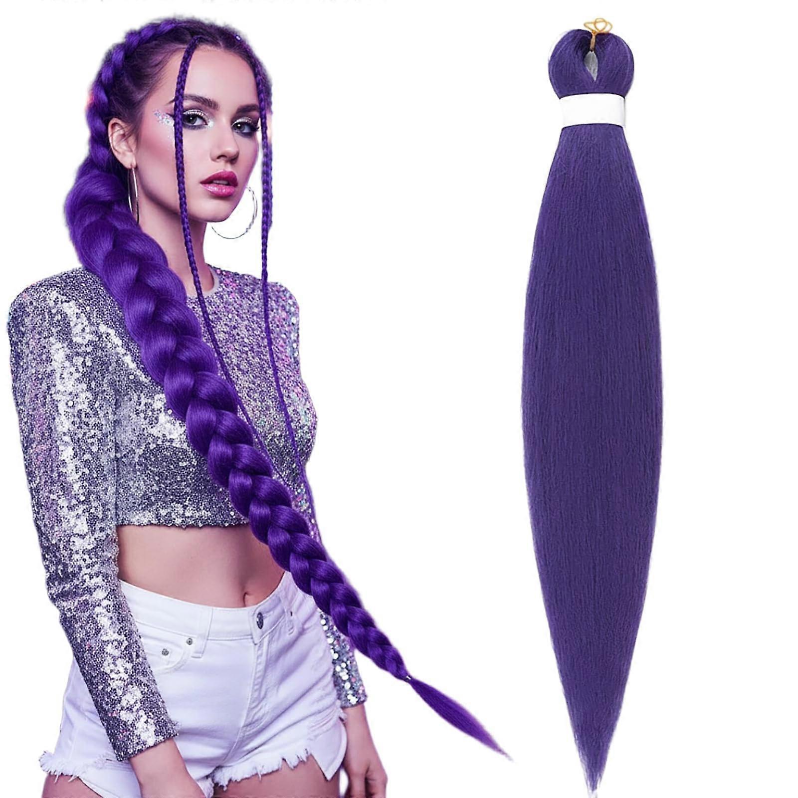 Purple Braiding Hair Extensions 66cm Pre-Stretched Synthetic Hair for Cosplay Stage Party (1PC)