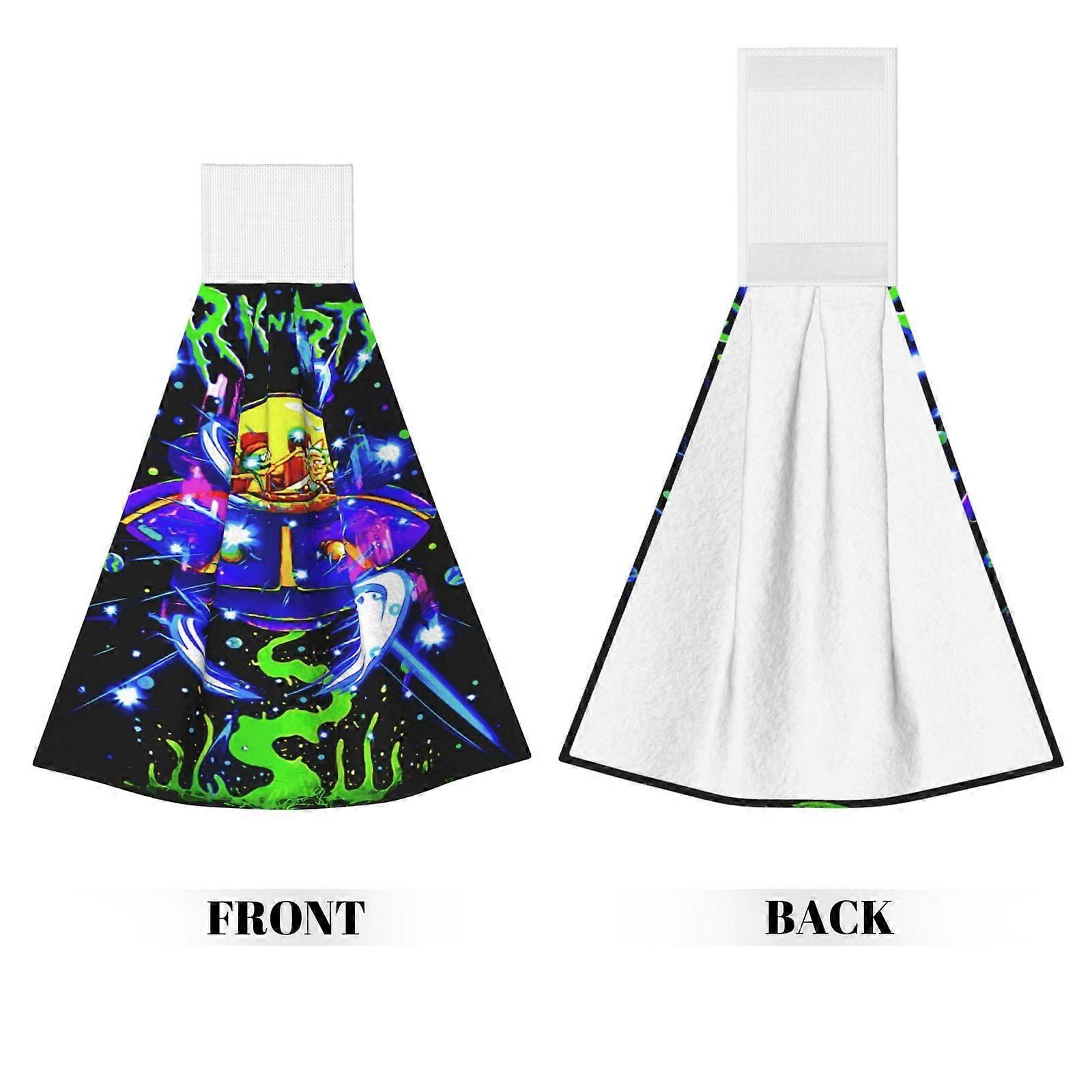 Rick & Morty Hand Towels With Velcro Loop, Coral Velvet Hand Wipes For Kitchen & Bathroom