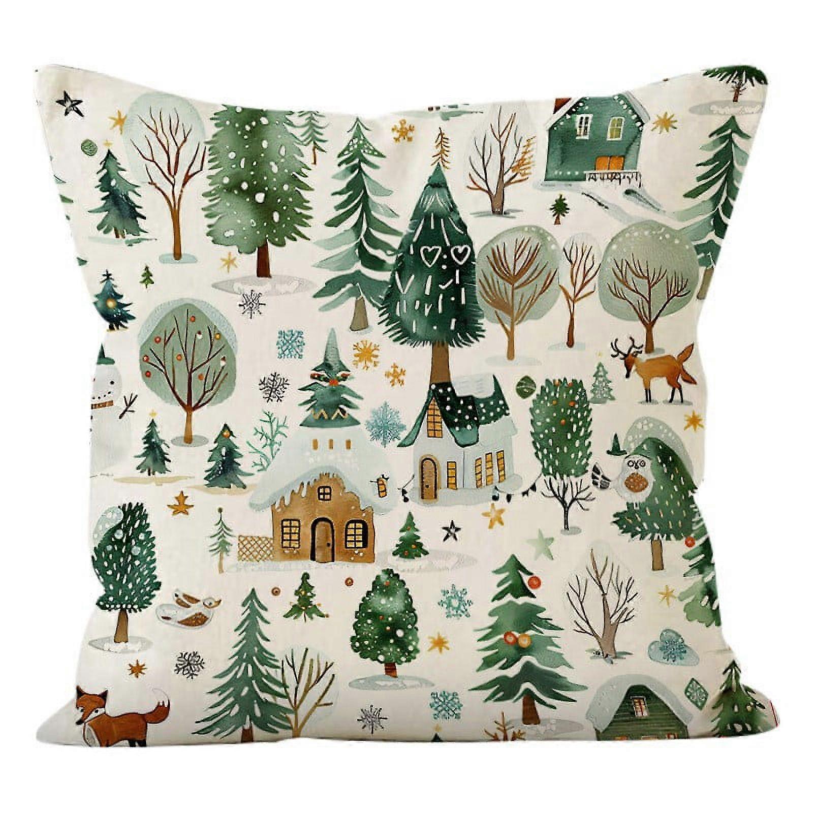 Pillows & Case Clearance Winter Christmas Tree Pillowcase Snowman Print Pillowcase Holiday Sofa Decoration Cushion Cover