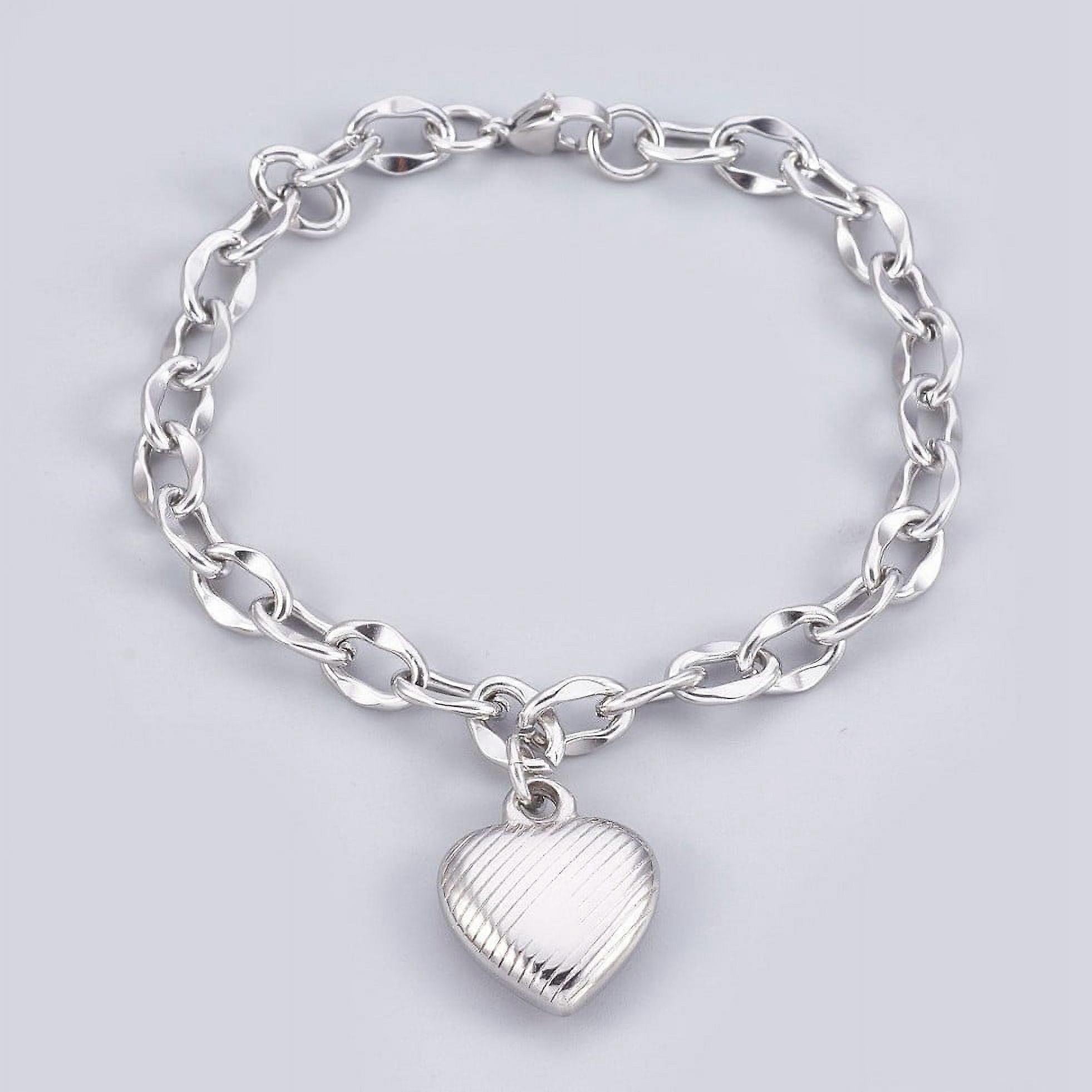 1pc 304 Stainless Steel Pendant Bracelets with Cable Chains and Lobster Claw Clasps Heart Stainless Steel Color 7-3/4 inch(19.8cm) 7mm