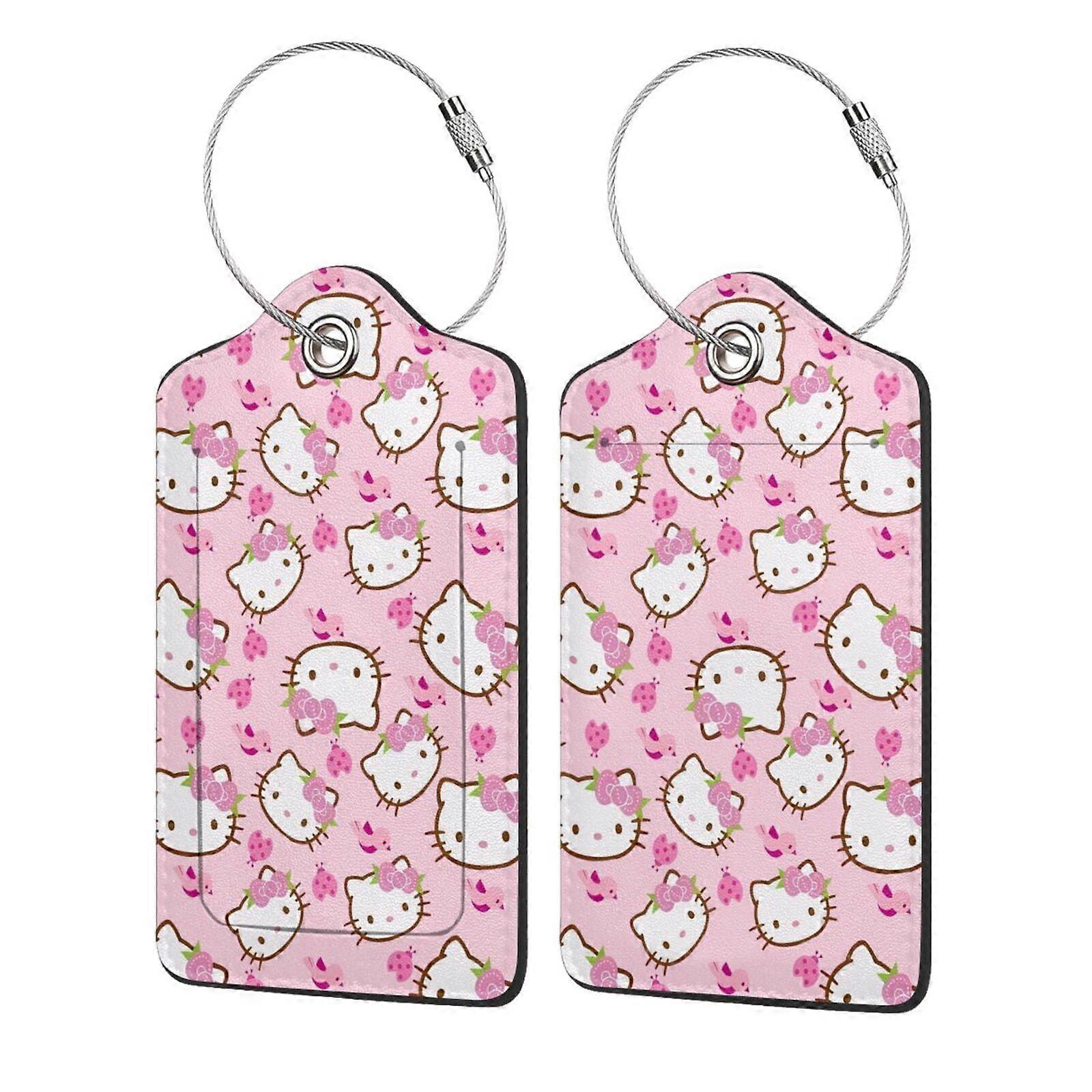 Hello Kitty 2Pc Stainless Steel Leather Luggage Tags with Privacy Protection, Waterproof ID Holder, Compatible with Travel Accessories, 2.9" * 4.6"