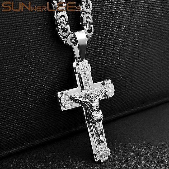 25-26 Stainless Steel Jesus Christ Cross Pendant Necklace Byzantine Link Chain Silver Color Gold Plated Men Boy Gift Sp217