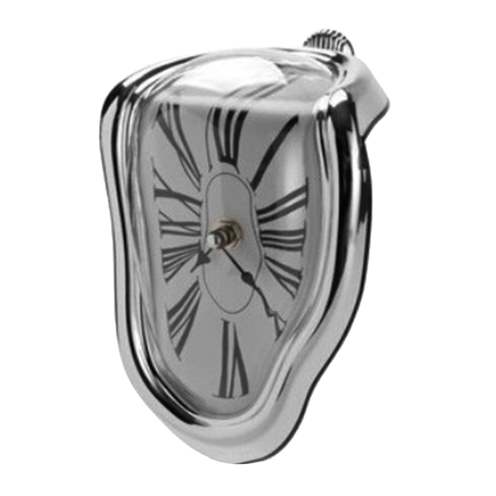 Melting Decor Clock Handmade Clock Home Decor Melted Decoration For Decorative Office Home Desk (Silver)