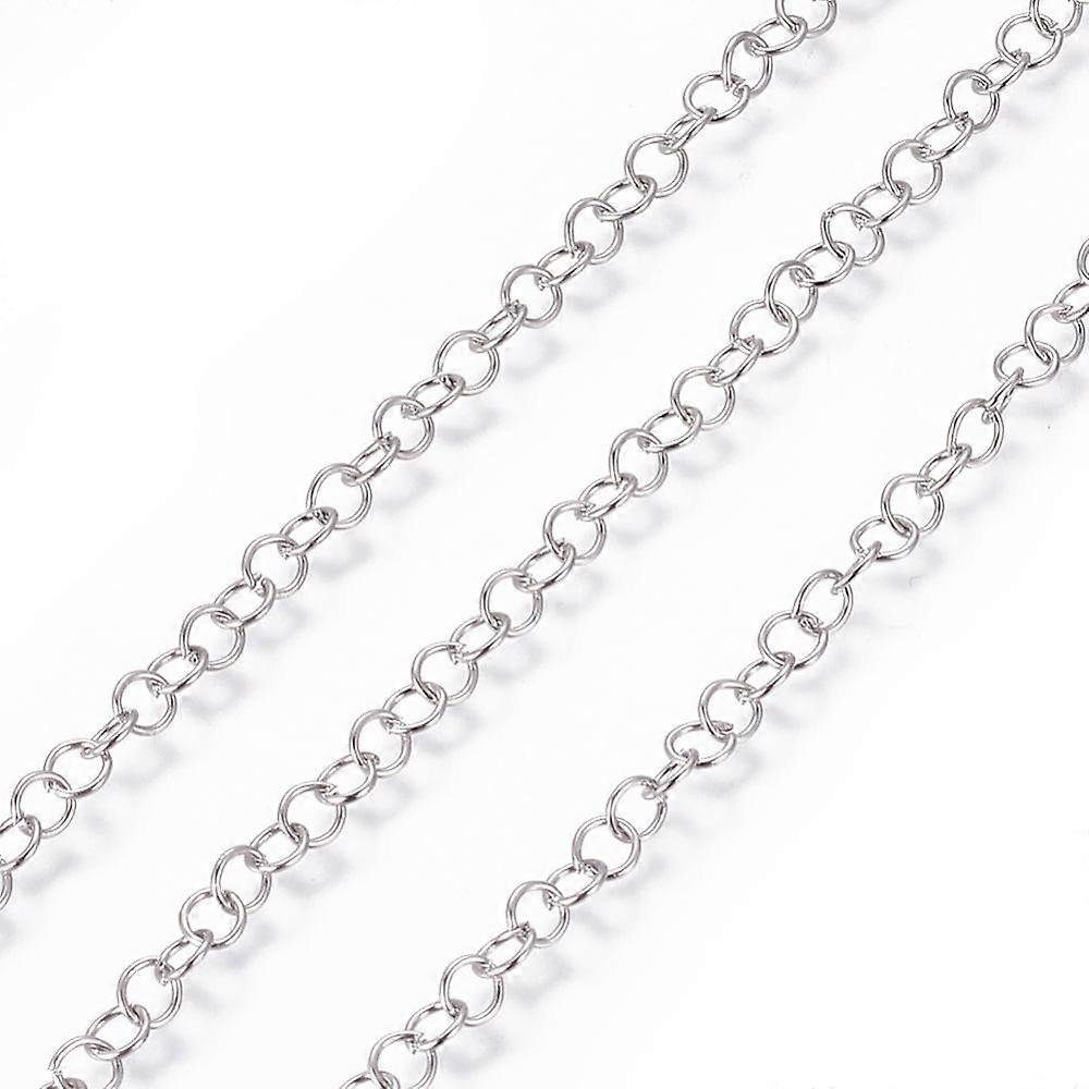 5m 304 Stainless Steel Rolo Chains Belcher Chain Unwelded Stainless Steel Color 3.7mm Links: 3.7x0.6mm