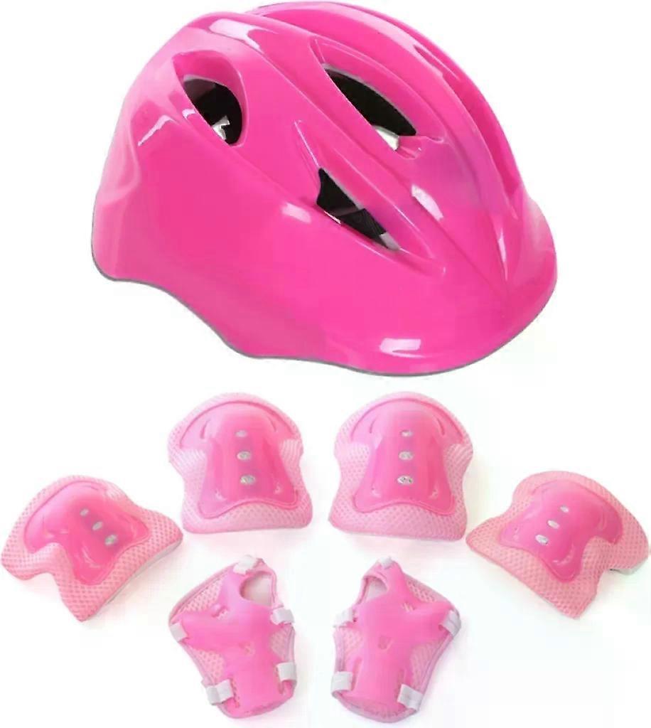 7Pcs/Set Kids Roller Skating Skateboard Ski Helmet Arm Sleeve Knee Protector Kit-Pink