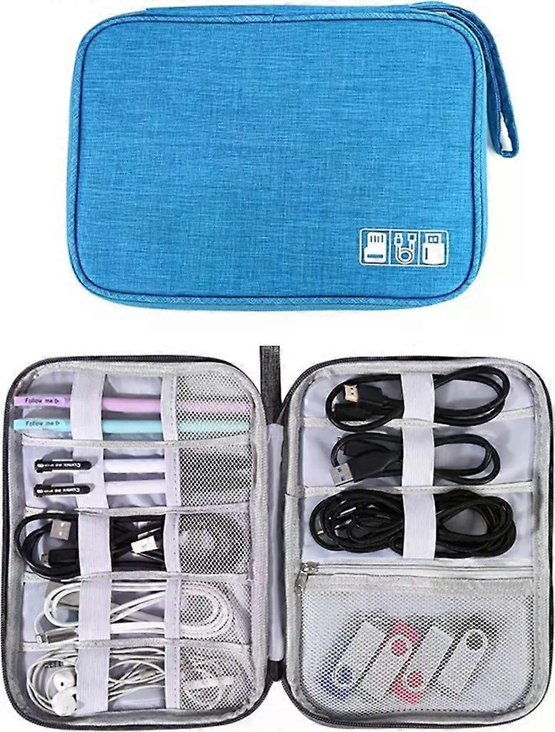 Cable bag in light blue, electronic cable and accessory organizer travel bag, electronic accessories bag