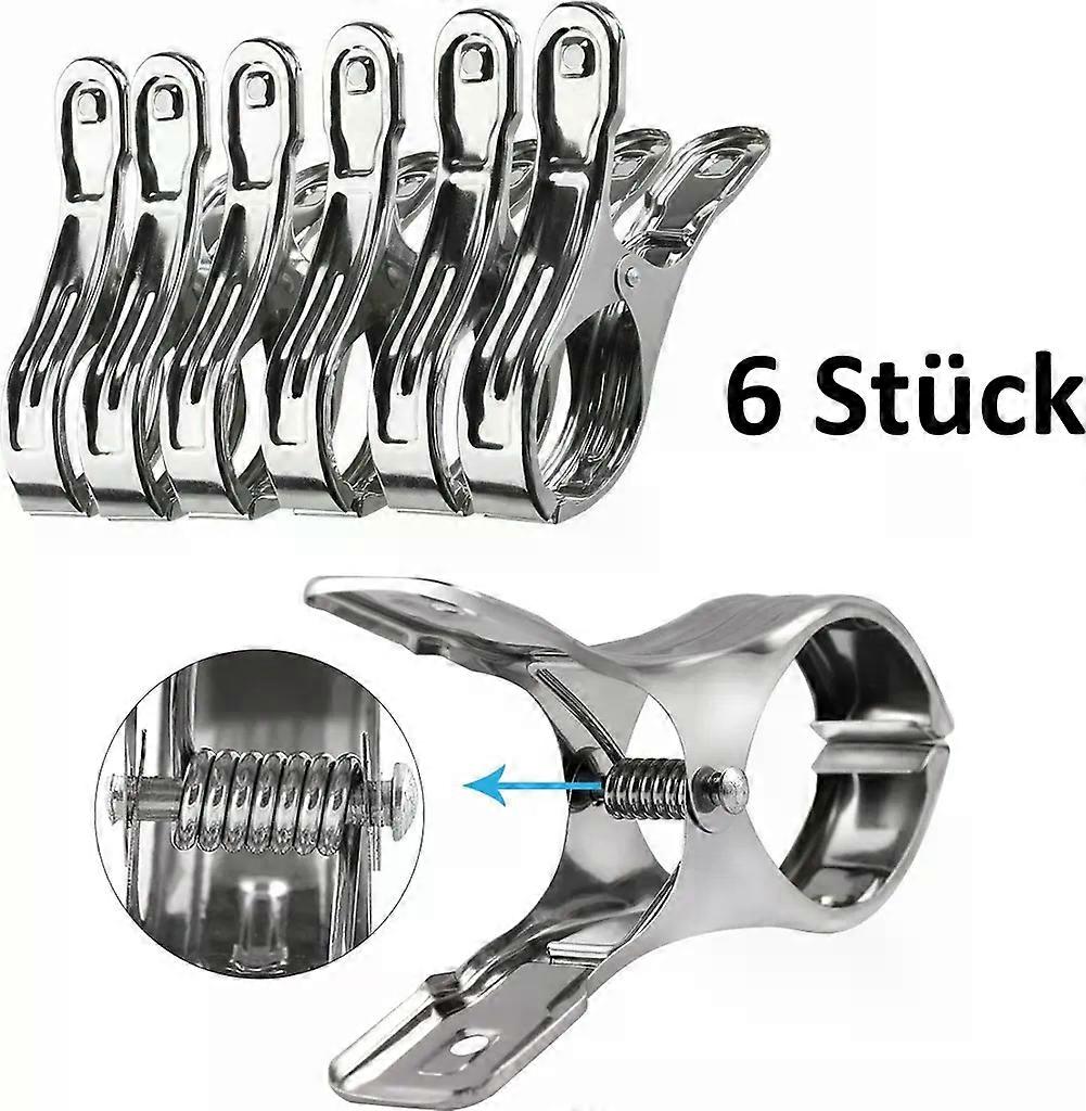 6 XXL clothespins made of stainless steel, silver, 12 x 2 x 6.5 cm, extra strong clamping force for heavy laundry