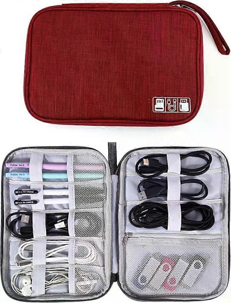 Cable bag in red, electronic cable and accessory organizer travel bag, electronic accessories bag