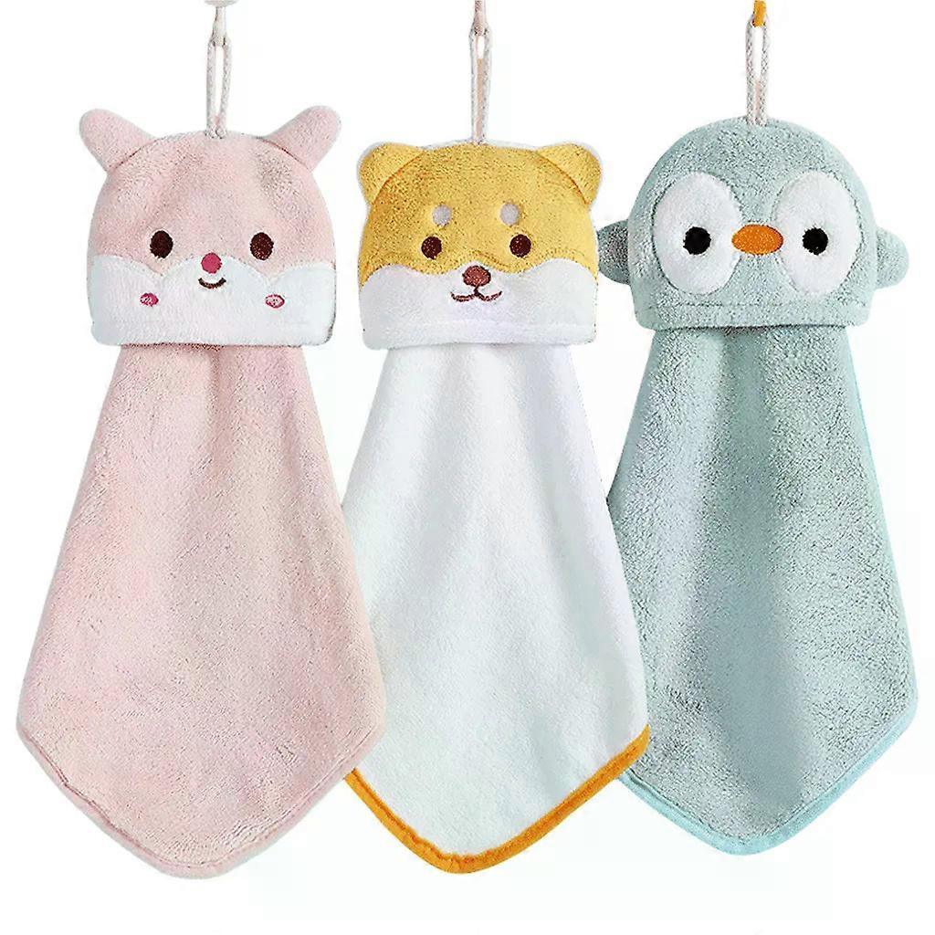 Gentle and soft: With their soft and delicate texture, these towels are ideal for all skin types and offer particularly gentle use. Water absorption: Our 3-piece towel set is specially designed to quickly absorb moisture, so your hands stay pleasantly dry after each use. Elegant design: The 3 towels in our set come in a variety of colors and designs that add an elegant touch to your bathroom or kitchen. Easy care: Thanks to their machine washability and quick drying properties, our towels are particularly easy to care for and stay fresh and hygienic during daily use. Versatile use: These practical towels are ideal for use in the kitchen or bathroom, offering flexibility for different environments. Our 3-piece towel set combines functionality and style. 1. They feature excellent water absorption, so your hands always stay dry and comfortable after use. 2. The soft texture makes them perfect for every skin type and ensures a soothing experience with every use. 3. Available in modern colors and patterns, the towels fit both practically and decoratively into your bathroom or kitchen. 4. They are durable, made of durable fibers that can withstand frequent washing and daily use. 5. They are also machine washable and quick-drying, making cleaning and maintenance even easier. Features: 1. The hanging towel is made of soft coral fleece, which is comfortable and skin-friendly. In addition, the sewing and hemming are meticulous and precise and will not fall off easily. 2. The vivid and cute patterns of the kids' hand towels are very popular with children, encouraging them to wash their hands frequently and keep their hands clean. 3. The quick-drying towel can be used in places like kitchens and bathrooms and can be easily hung in any position to keep your hands and face dry at all times. It can also be used as a wiping cloth for cleaning dishes, tables, and others.