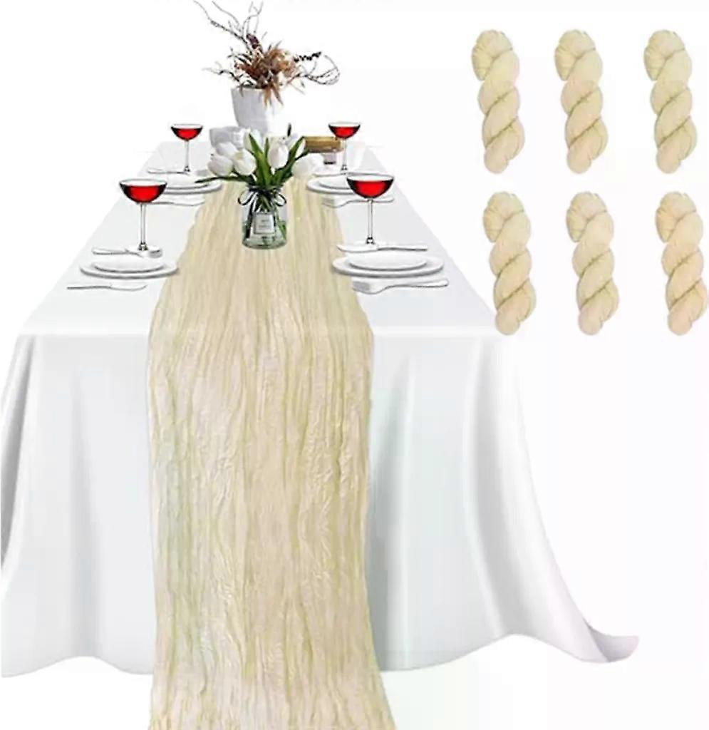 Pack of 6 hand-dyed table runners, beige, 90x300 cm, Boho Rustic, made of polyester, tulle, burlap, soft & wrinkled