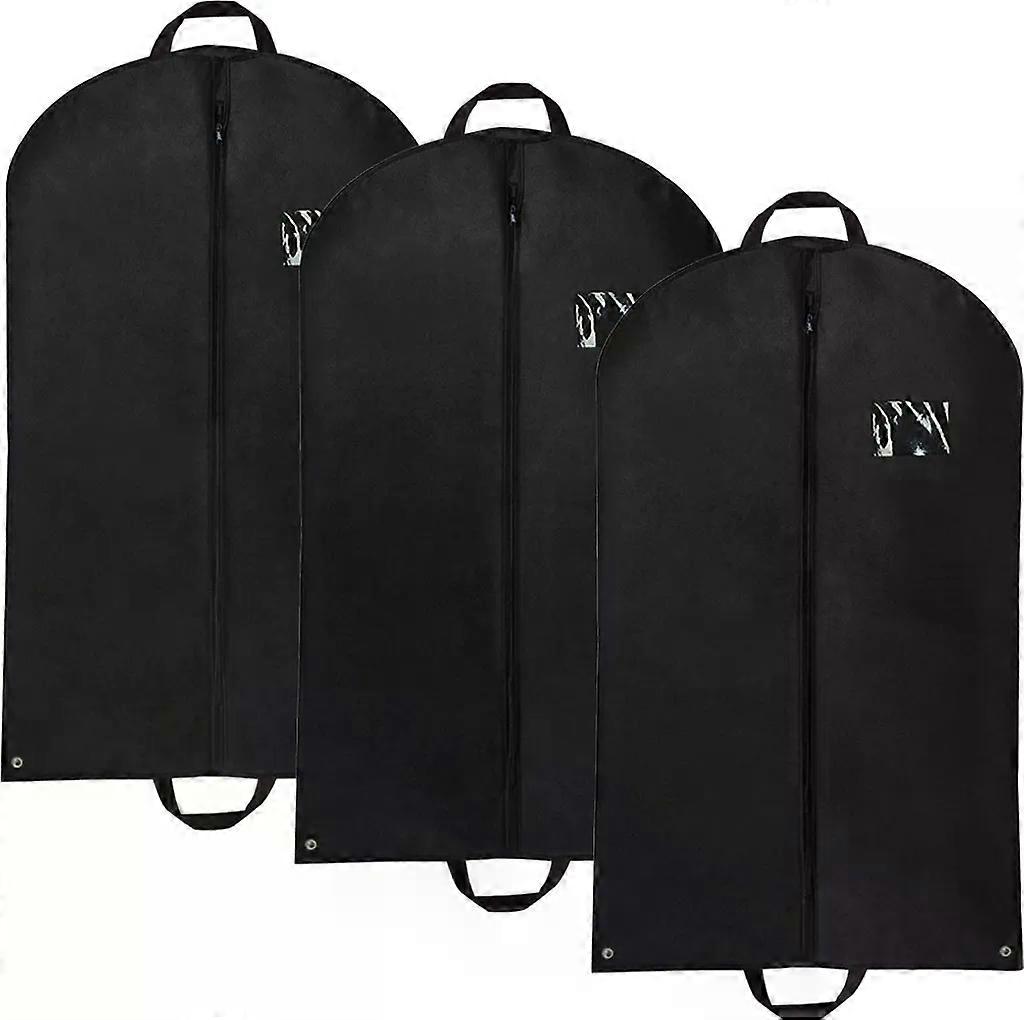 Set of 3 garment bags, black, 60 cm wide, nonwoven fabric, breathable, waterproof, with transparent window and sturdy zipper