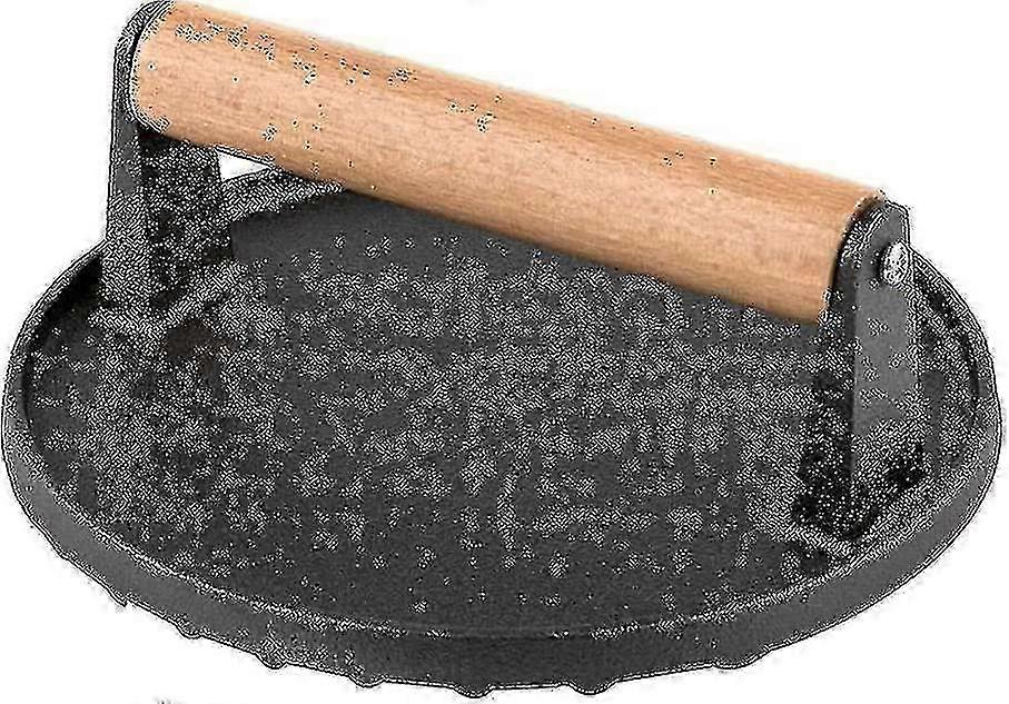 25-26 Burger Smasher Antihaft-Burgerpressen Fleischpresse Gusseisen Bacon Presse Steak Fleisch Grill Gewicht Heavy Duty Bbq Tool mit Holzgri