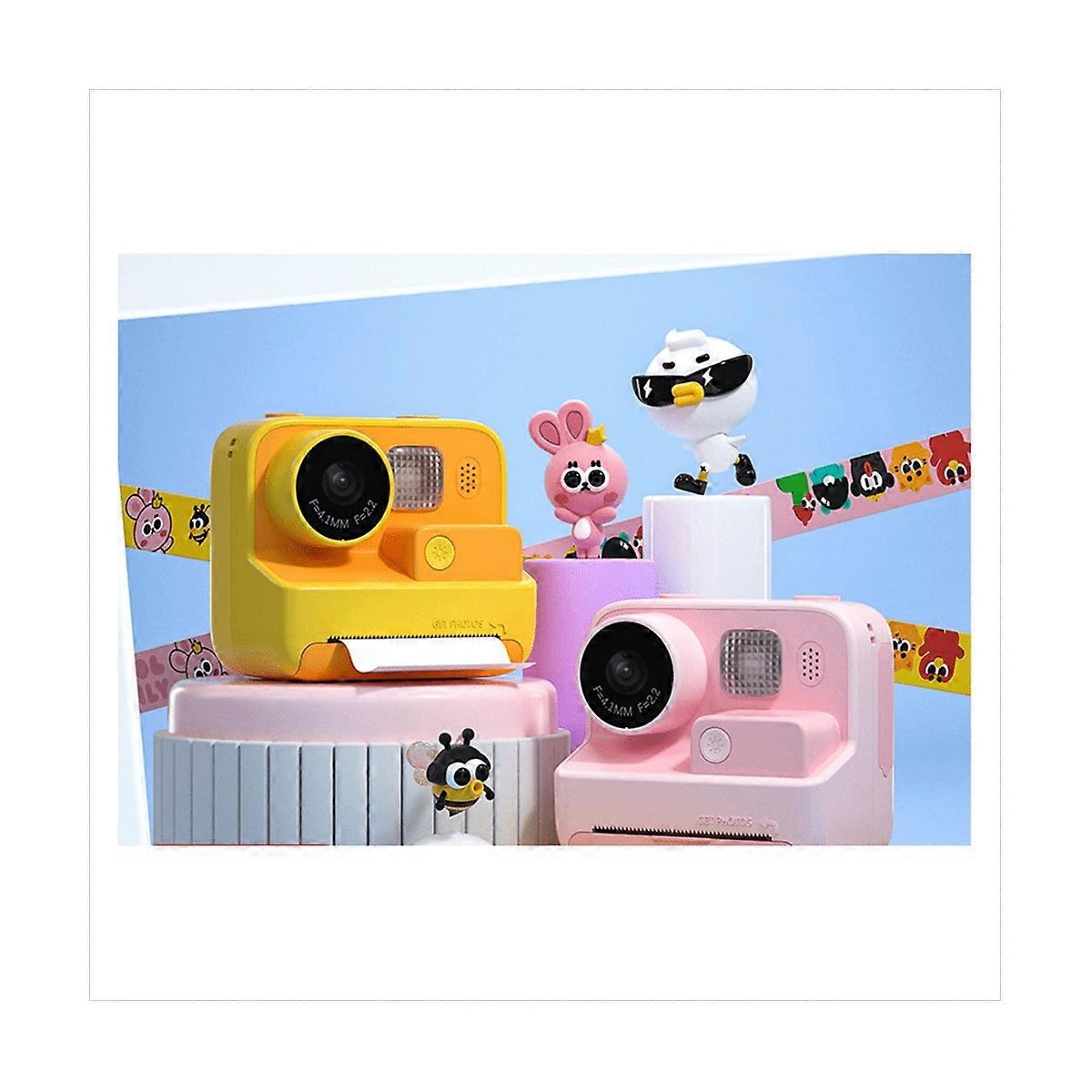 Children Instant Camera HD 1080P Video Photo Digital Print Dual Lens Photography with Print Paper Camera,Yellow