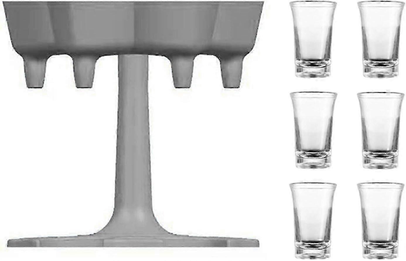 25-26 Shot Glass Dispenser With 6 Hooks, Wine Glass Rack Include 6 Glass, Drink Dispenser for Filling Liquid