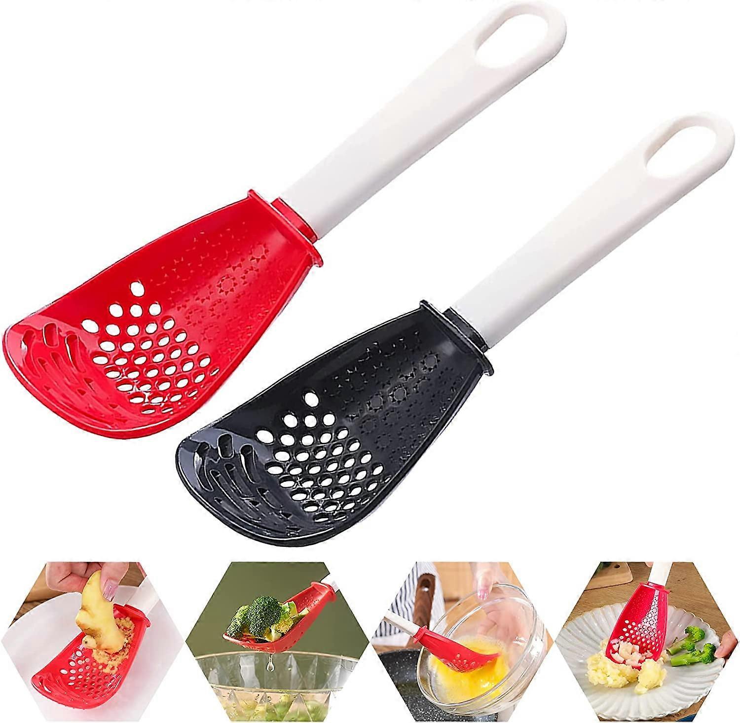 6 in 1 Multifunctional Kitchen Spoon Set, Silicone Skimmer Slotted Spoon, Colander Strainer, Compatible with Cooking, Draining, Mashing, Grating,