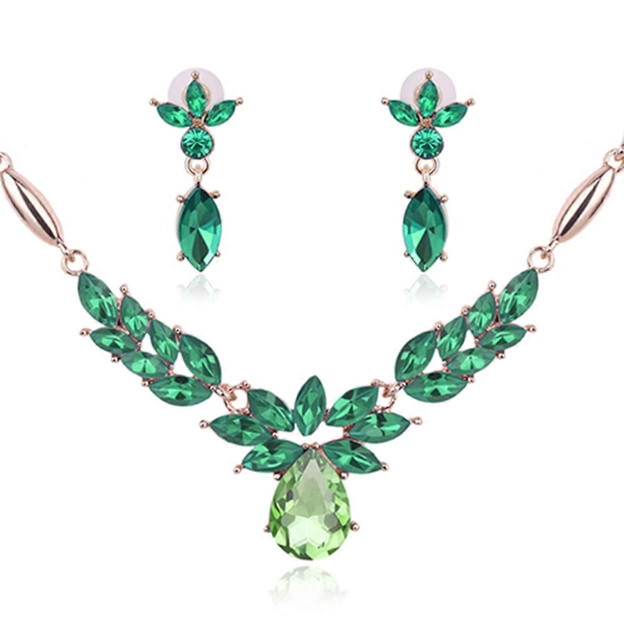 Womens Rhinestone Flower Pendant Alloy Necklace Earrings Wedding Jewelry Set