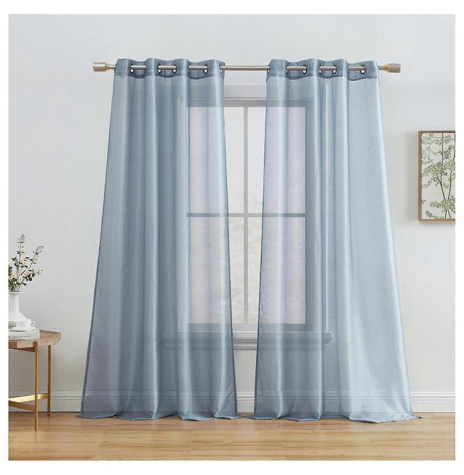 saney 2 Piece Semi Sheer Voile Window Curtain Grommet Panels for Bedroom & Living Room (54" W x 95" L, Dusty Blue)