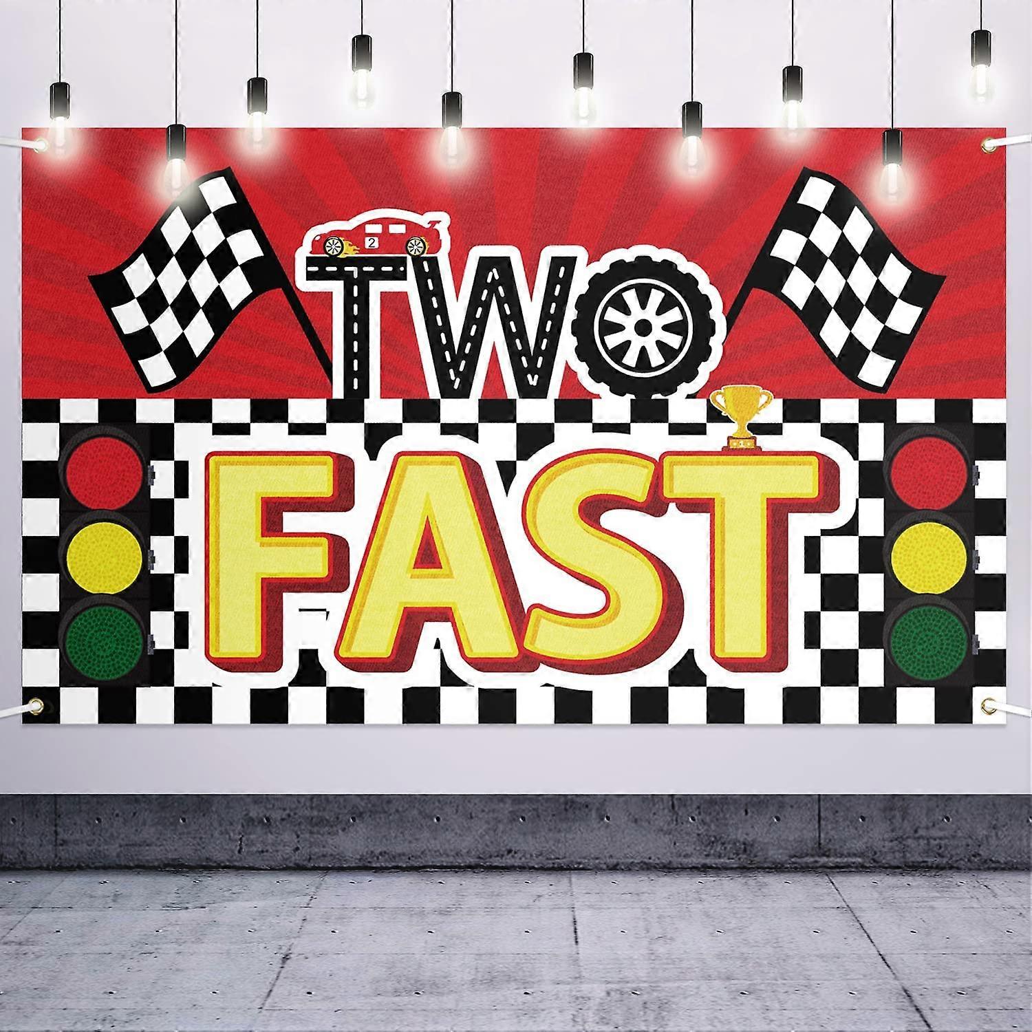 Racing Car Two Fast Large Banner - Cheers to 2nd Birthday Home Wall Photoprop Backdrop,2nd Birthday Party Decorations.