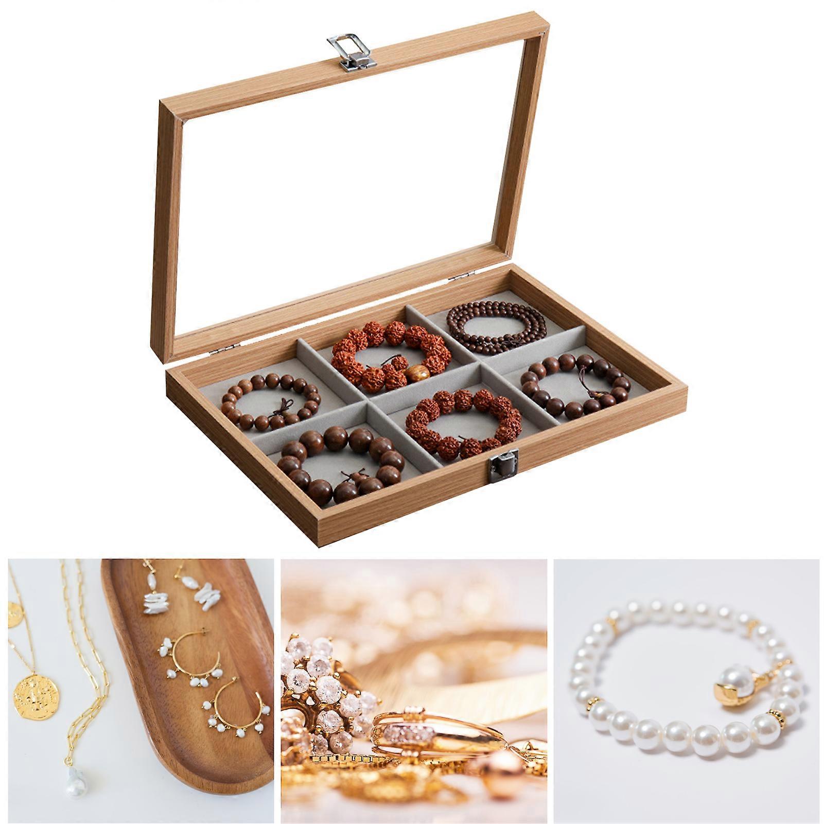 Description: Introducing our stylish and functional jewelry box! This exquisite jewelry box is designed to keep your precious accessories safe and organized. Designed with a high-quality transparent lid, it not only adds a touch of elegance to your dressing table, but also allows you to easily see and find your favorite pieces. With its large capacity partition storage, this jewelry box offers ample space for all your rings, earrings, necklaces, bracelets, and more. The partitions are thoughtfully designed to keep different types of jewelry separate and prevent them from tangling or scratching each other. The transparent lid ensures that your jewelry is protected from dust while still being visible at all times. No more searching through cluttered drawers or boxes! The sleek and simple appearance design of this jewelry box makes it a perfect addition to any home decor style. Whether you have a modern or traditional interior, this box will seamlessly blend in. To ensure the utmost care for your precious pieces, the interior of the box is lined with fine flannel. This soft material provides a gentle cushioning effect, preventing any damage or scratches to your jewelry. Our jewelry box is not just a practical storage solution but also a beautiful display piece. It makes for an ideal gift for birthdays, anniversaries, or any special occasions. Item Name: Jewelry Box Material: Composite Board, Faux Leather Features: Large Capacity, Dustproof, Multipurpose, Transparent Size Details: L: 35cm/13.78", W: 24cm/9.45", H: 5cm/1.97" (Approx.) Notes: Due to the light and screen setting difference, the item's color may be slightly different from the pictures. Please allow slight dimension difference due to different manual measurement. Package Includes: 1 x Jewelry Box Large capacity saves countertop space and provides organization. This jewelry box offers ample space for storing all your rings, earrings, necklaces, bracelets, and more. Transparent lid design for easy visibility and showcasing of your jewelry collection. And, the dustproof feature ensures your jewelry stays clean and protected. Stylish and simple appearance design adds a touch of elegance to your dressing table or vanity. Made of high-quality material, our desktop storage box has the advantages of high durability, sturdy, non-breakable and good load-bearing. Fine flannel lining provides a soft and gentle surface to prevent scratches on your precious jewelry.
