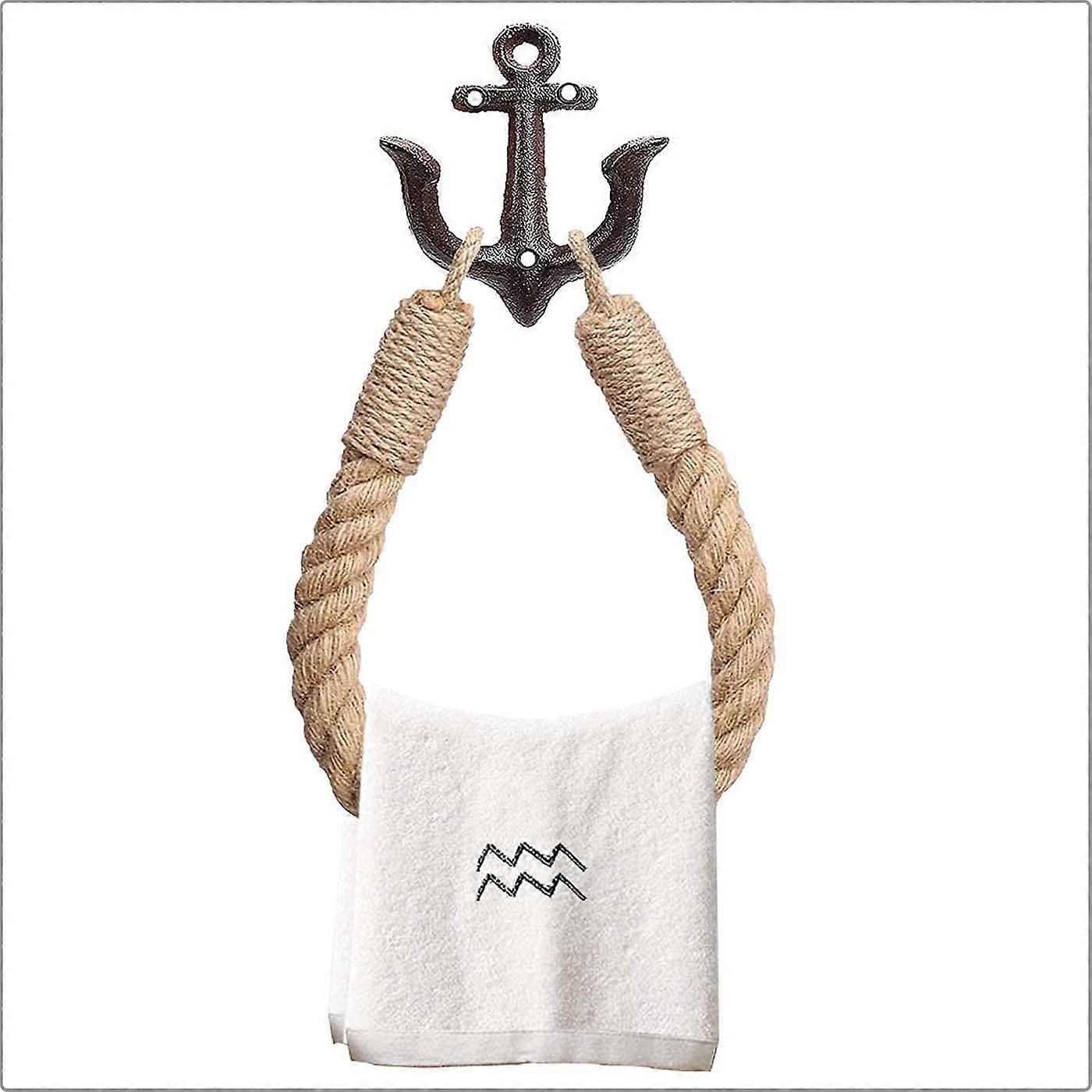 Fymlhomi Nautical Rope Towel Ring, Toilet Paper Holder Beach Themed Bathroom Decord with Metal Hook for Beach Themed Bathroom Decor (Brown)