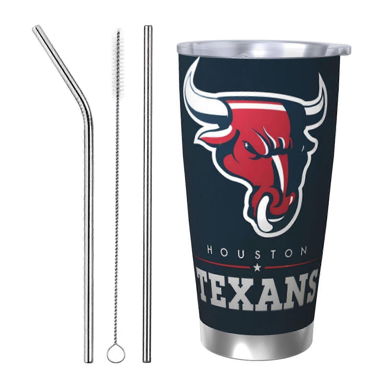Texans Football Team Theme 20oz Stainless Steel Thermos Cup with Lid & Straw, Compatible with Car Cup Holders - Hot & Cold Drinks, Coffee, Sports,
