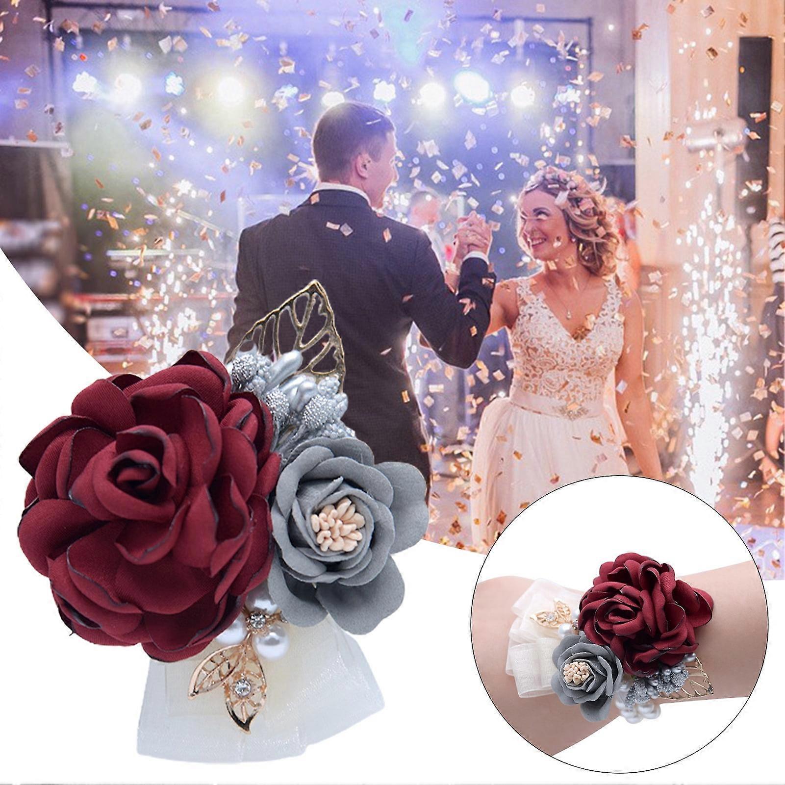 SUSUchens Wrist Flower Fade-resistant Exquisite Alloy Artificial Rose Bridesmaid Corsage Wedding Supplies Light Grey