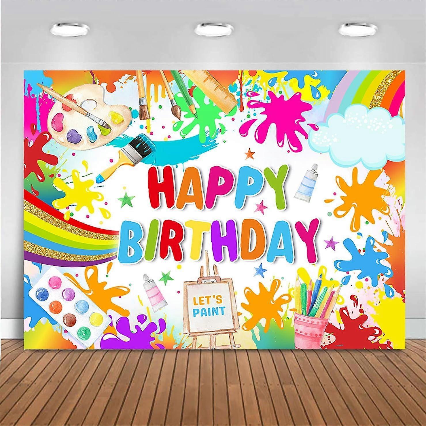 Custom Art Paint Birthday Decor, 7x5ft Kids Paint Splatter Backdrop, Sip & Paint Party Supplies, Art Themed Photography Banner
