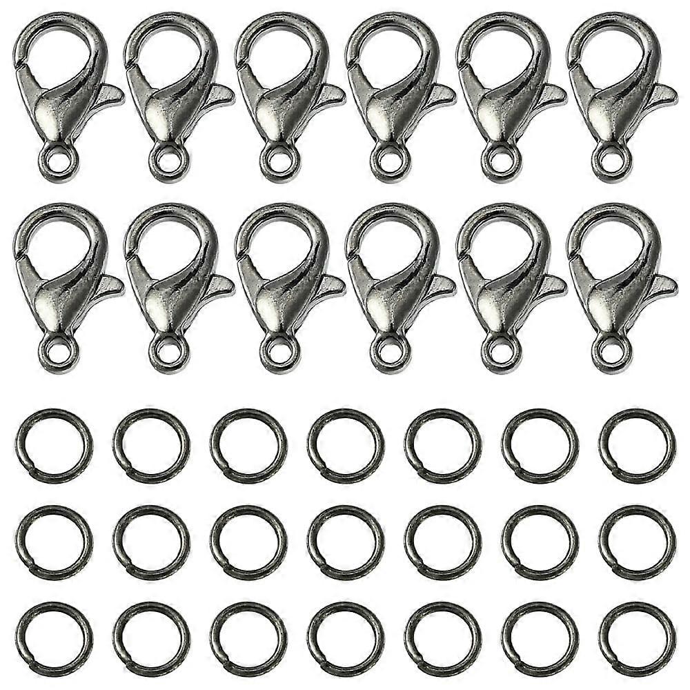 1Bag 50Pcs Zinc Alloy Lobster Claw Clasps Parrot Trigger Clasps with 150Pcs Iron Open Jump Rings Gunmetal 12x6mm Hole: 1.2mm