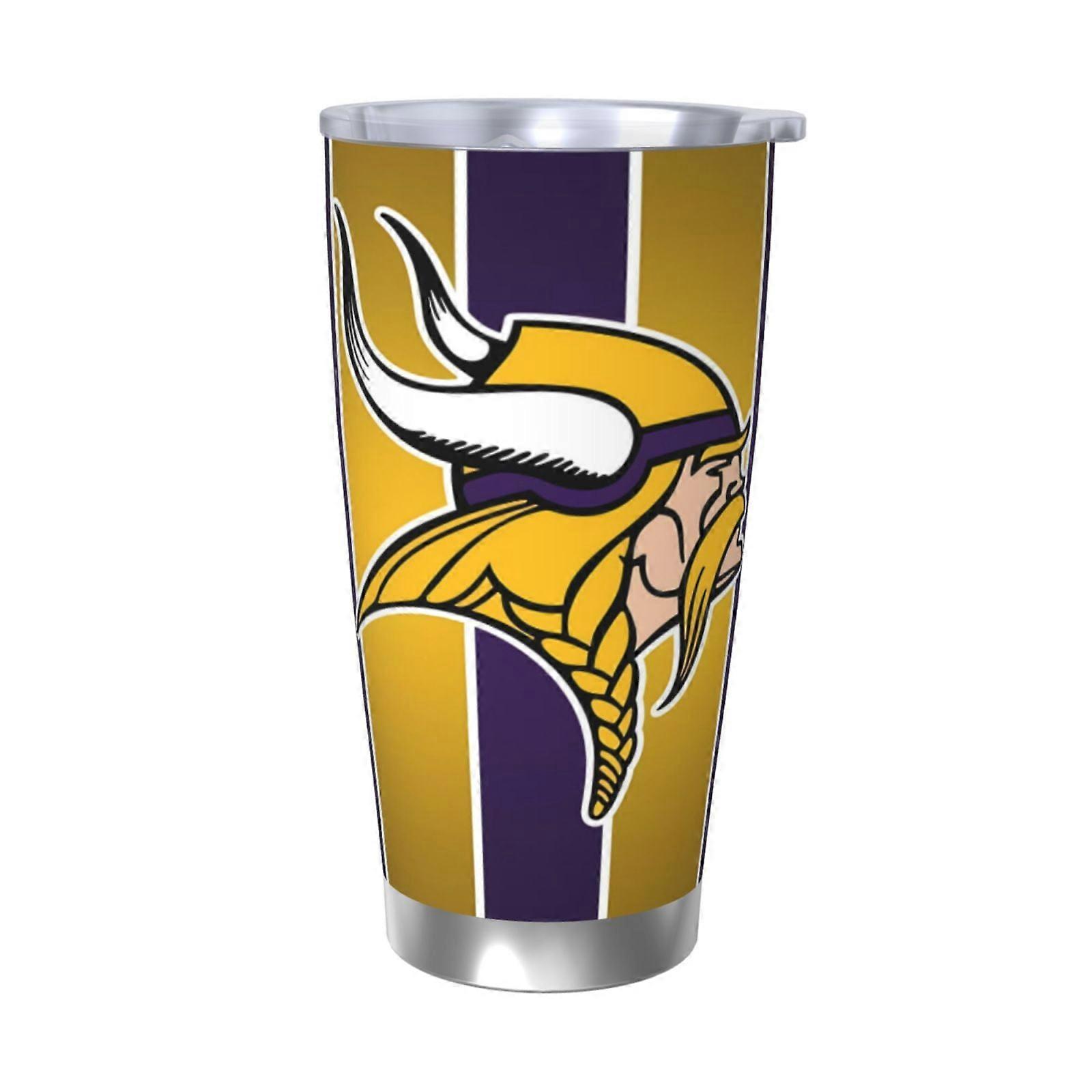 Vikings Football Team Theme 304 Stainless Steel Thermos Cup 20oz with Lid & Straw, Compatible with Car Cup, Hot & Cold Drinks, Coffee, Sports,